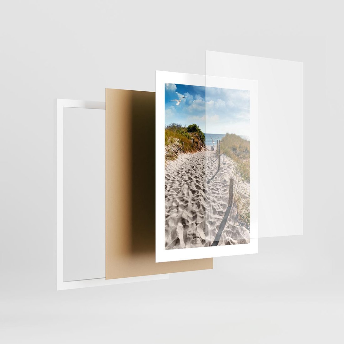Plakat w ramie 30x40 - Mewy nad Morzem - plaża, mewy - rama biała