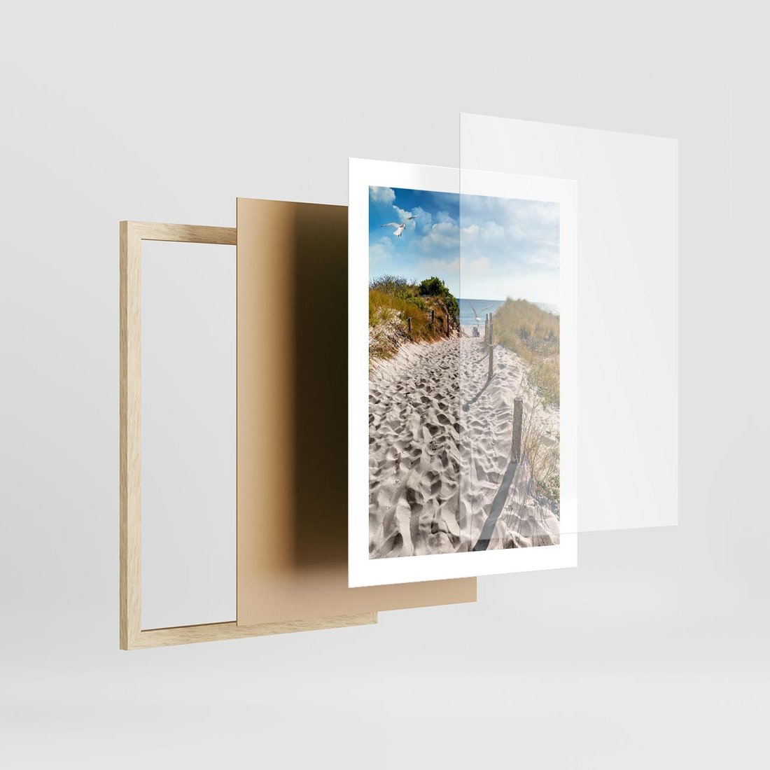 Plakat w ramie 30x40 - Mewy nad Morzem - plaża, mewy - rama drewno