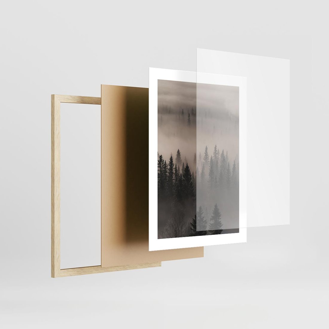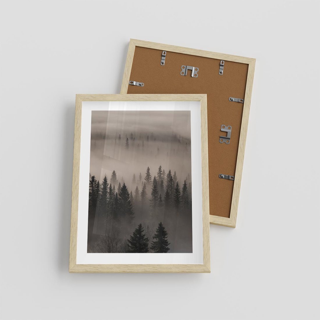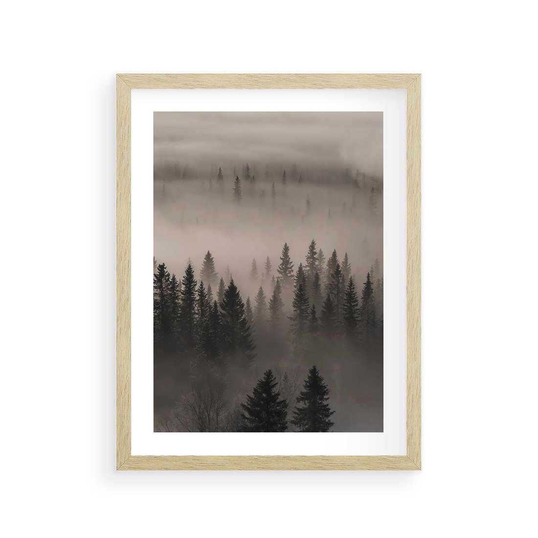 Plakat w ramie 30x40 - Mglista Opowieść Lasu - las, mgła - rama drewno