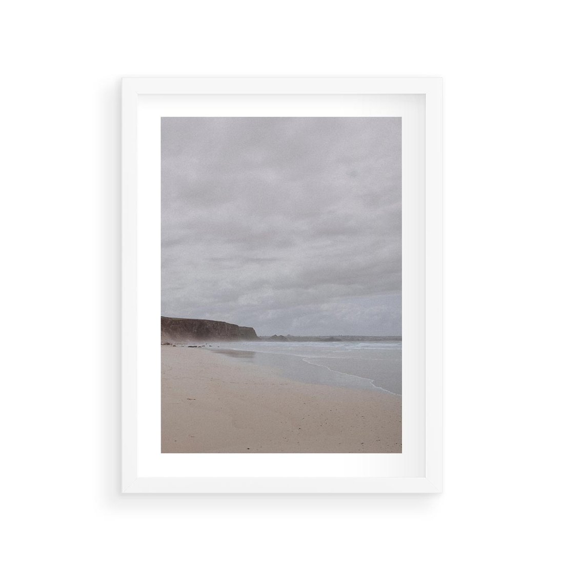 Plakat w ramie 30x40 - Mglista plaża - plaża, mgła - rama biała