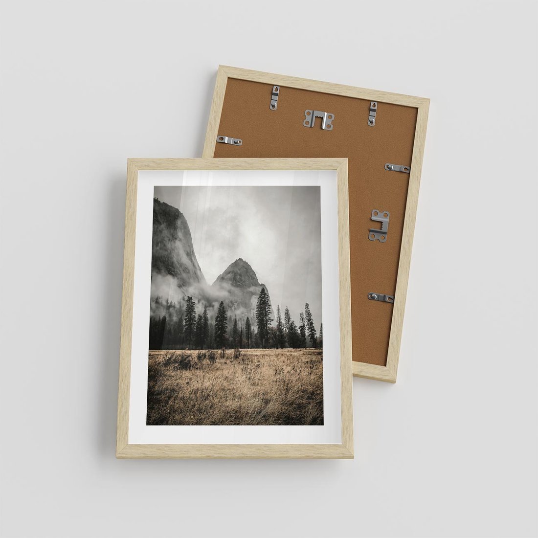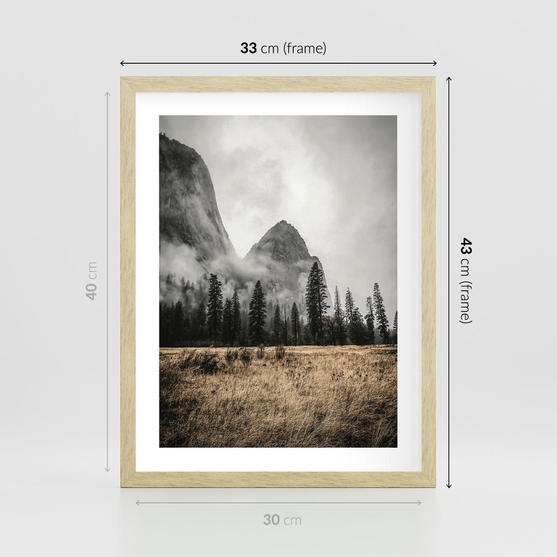 Plakat w ramie 30x40 - Mglisty Pejzaż Górski: Urok Niewidzialnośc - góry, krajobraz - rama drewno