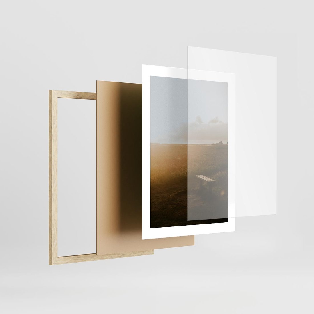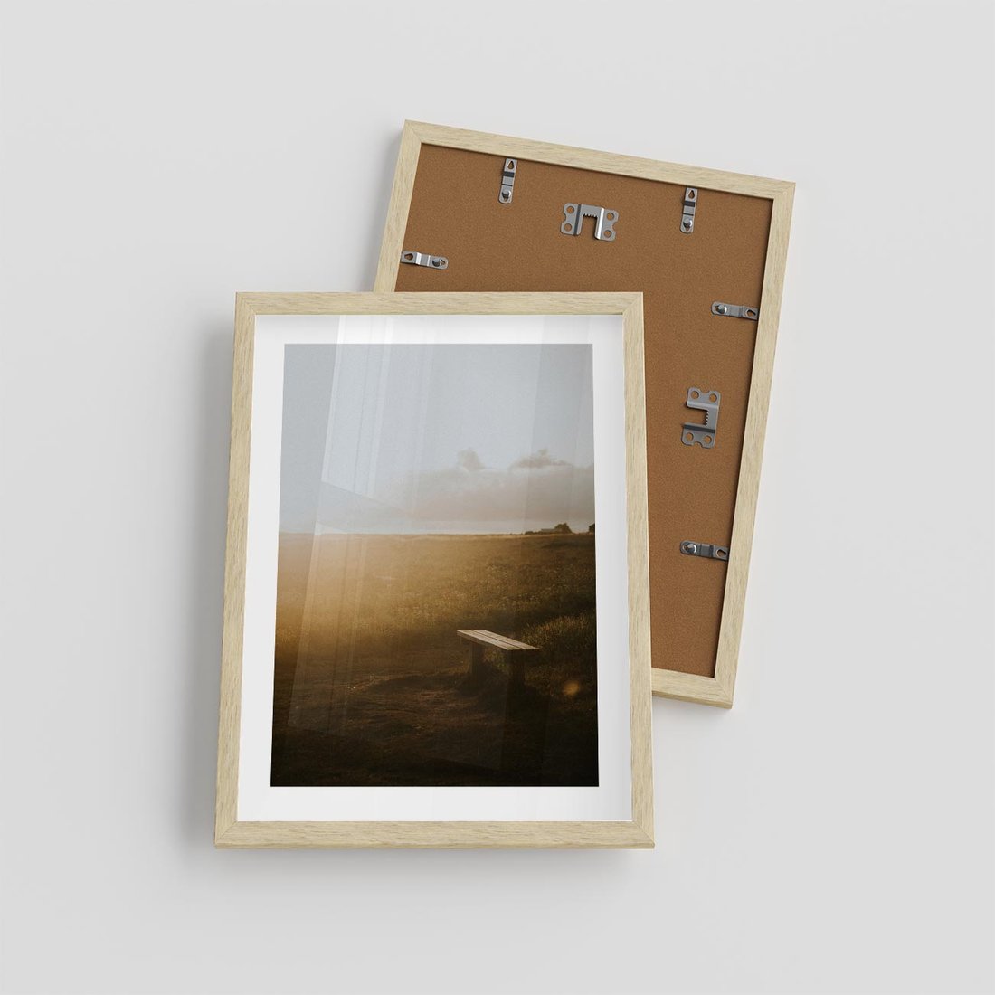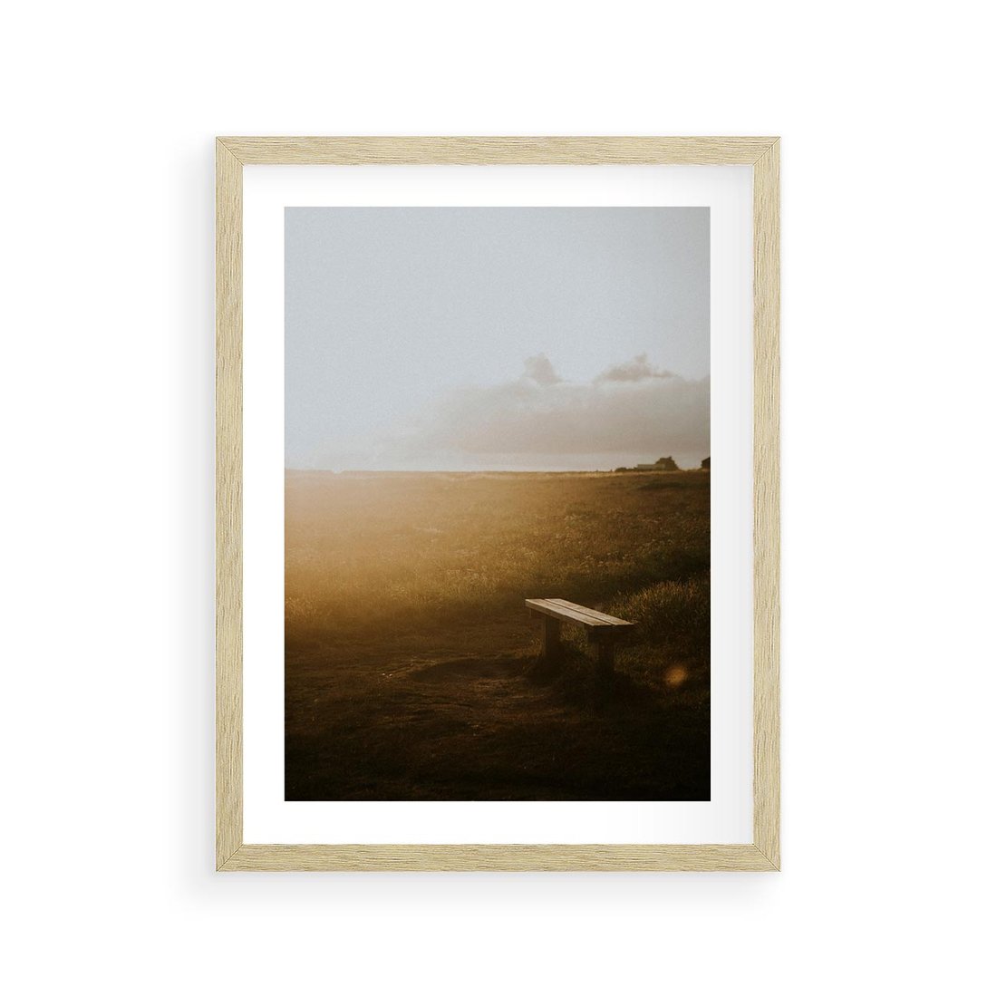 • Plakat w ramie 30x40 - Mglisty zachód słońca na ławeczce