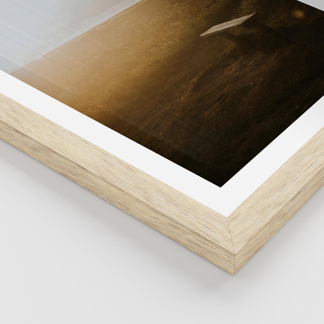 Plakat w ramie 30x40 - Mglisty zachód słońca na ławeczce - mgła, zachód - rama drewno