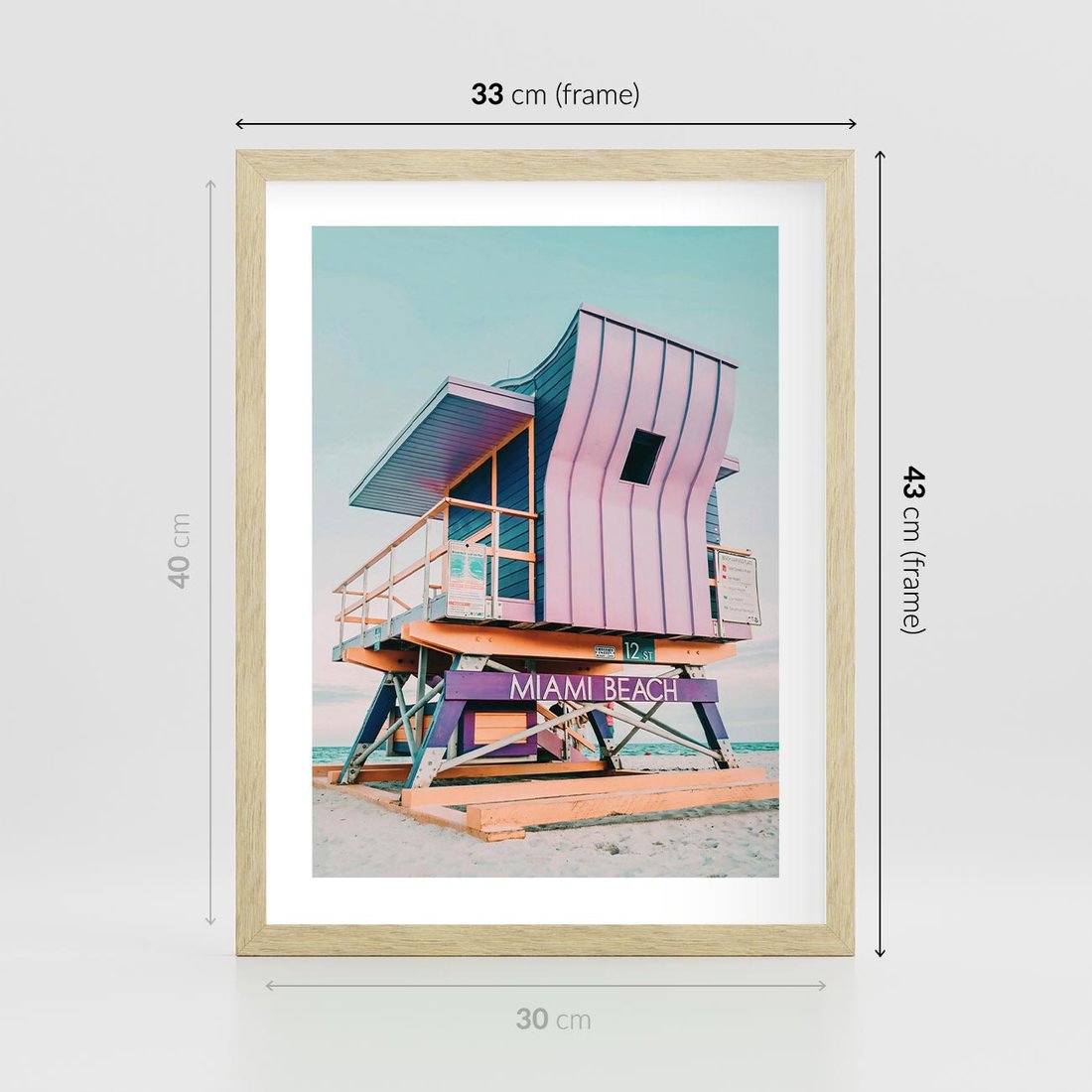 Plakat w ramie 30x40 - Miami Beach - plaża miami, domek ratownika - rama drewno