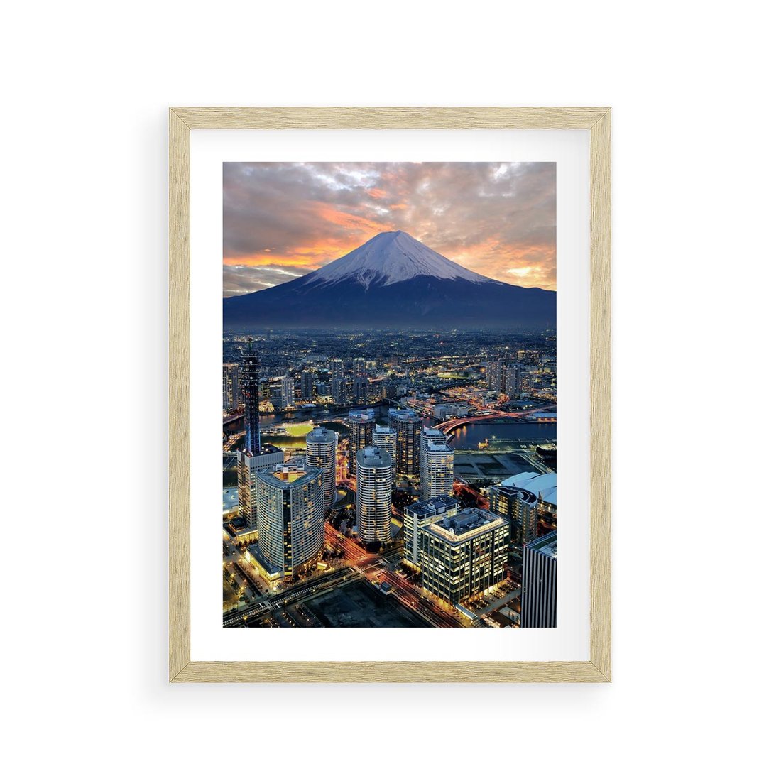 Plakat w ramie 30x40 - Miasto na Górnym Horyzoncie - miasto, góry - rama drewno