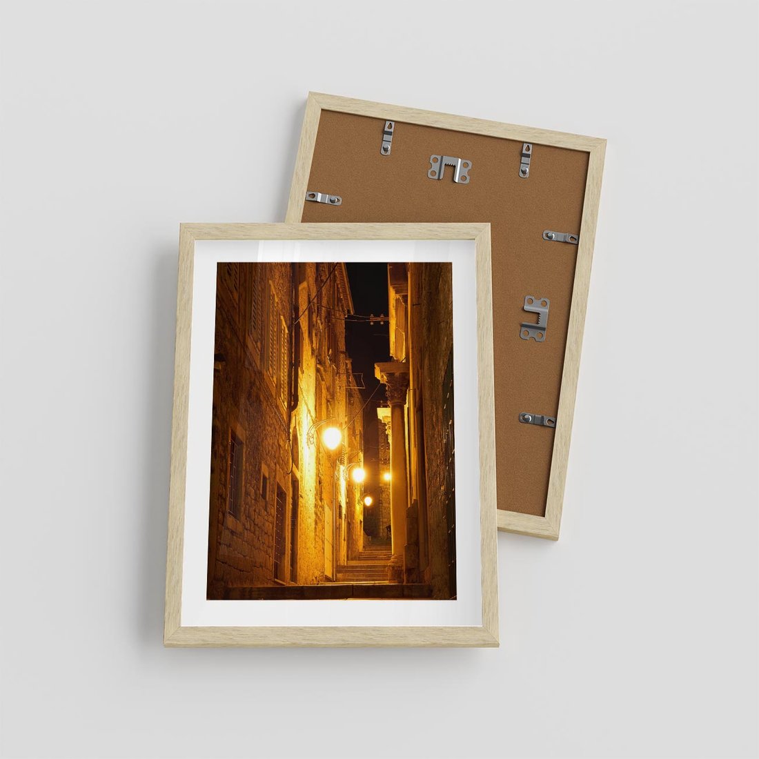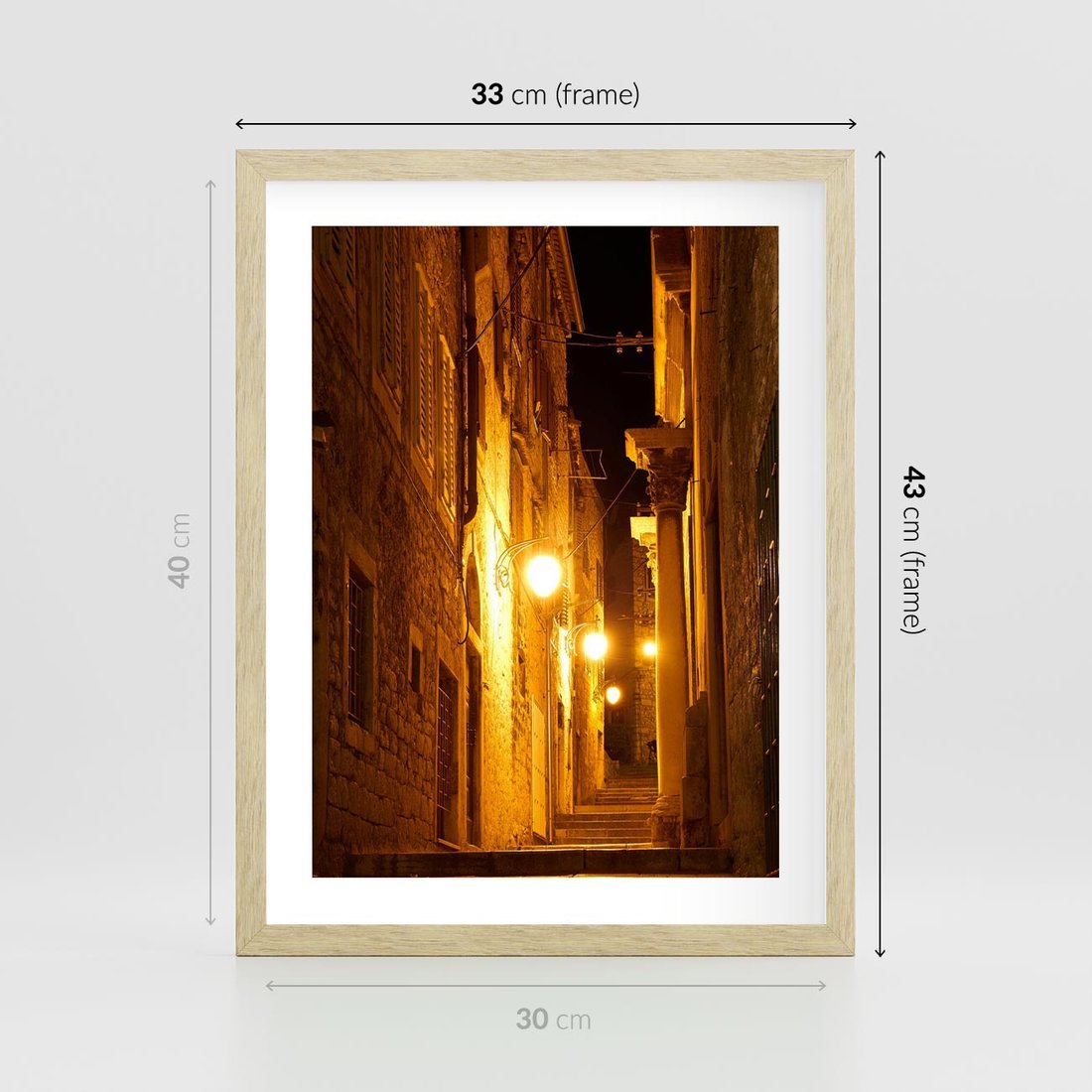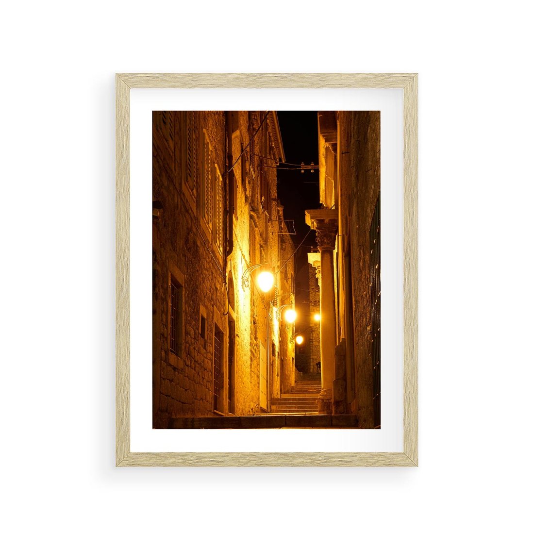 Plakat w ramie 30x40 - Miasto Pod Gwieździstym Niebem - uliczka, perspektywa - rama drewno