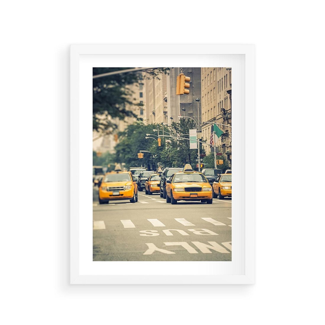 Plakat w ramie 30x40 - Miasto Taksówek - taksówki, miasto - rama biała