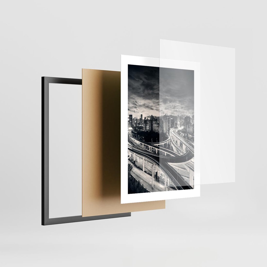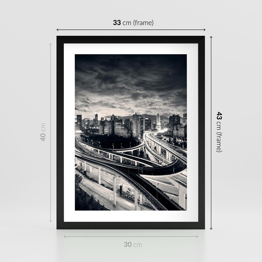 Plakat w ramie 30x40 - Miejska Symfonia - miasto, nocą - rama czarna