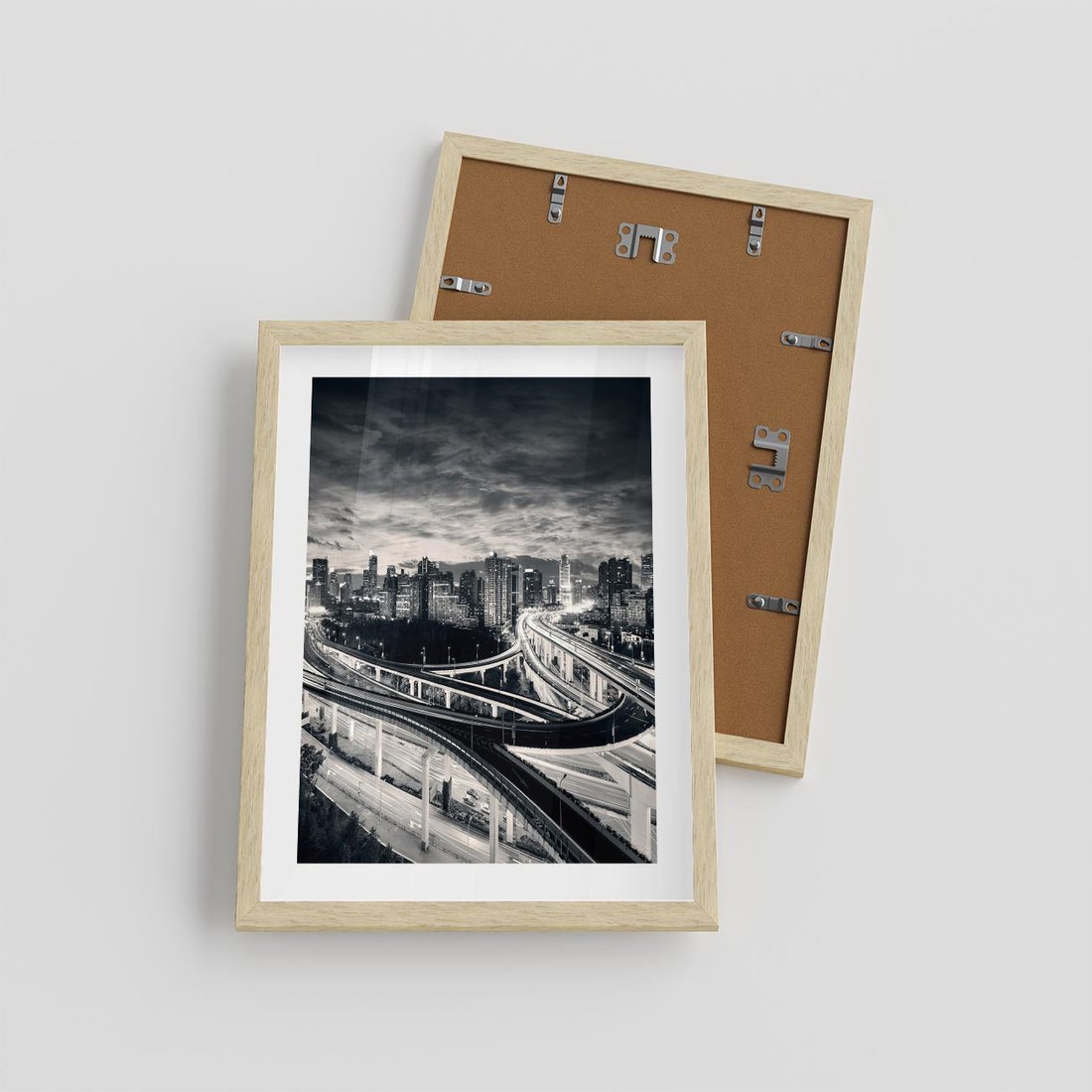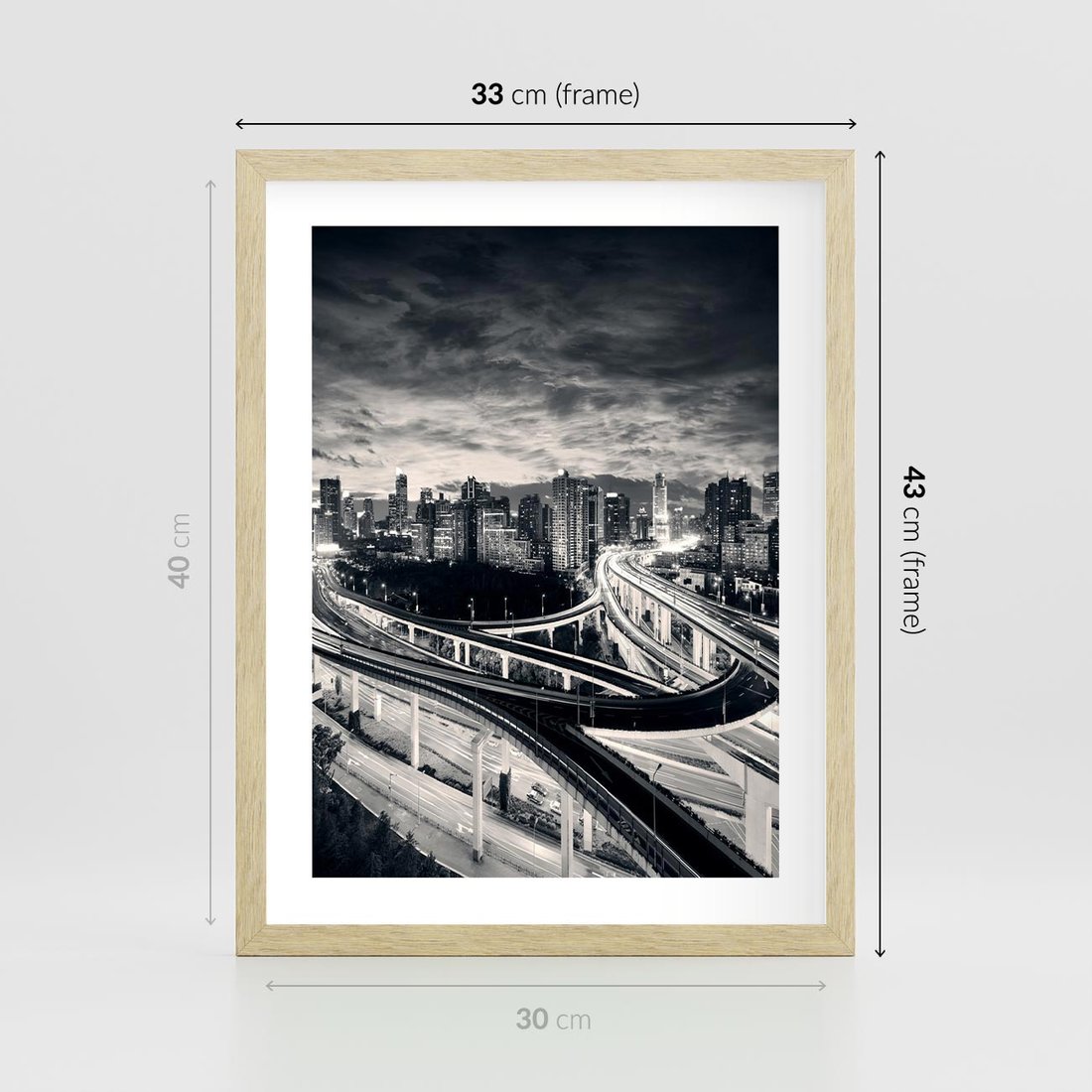 Plakat w ramie 30x40 - Miejska Symfonia - miasto, nocą - rama drewno