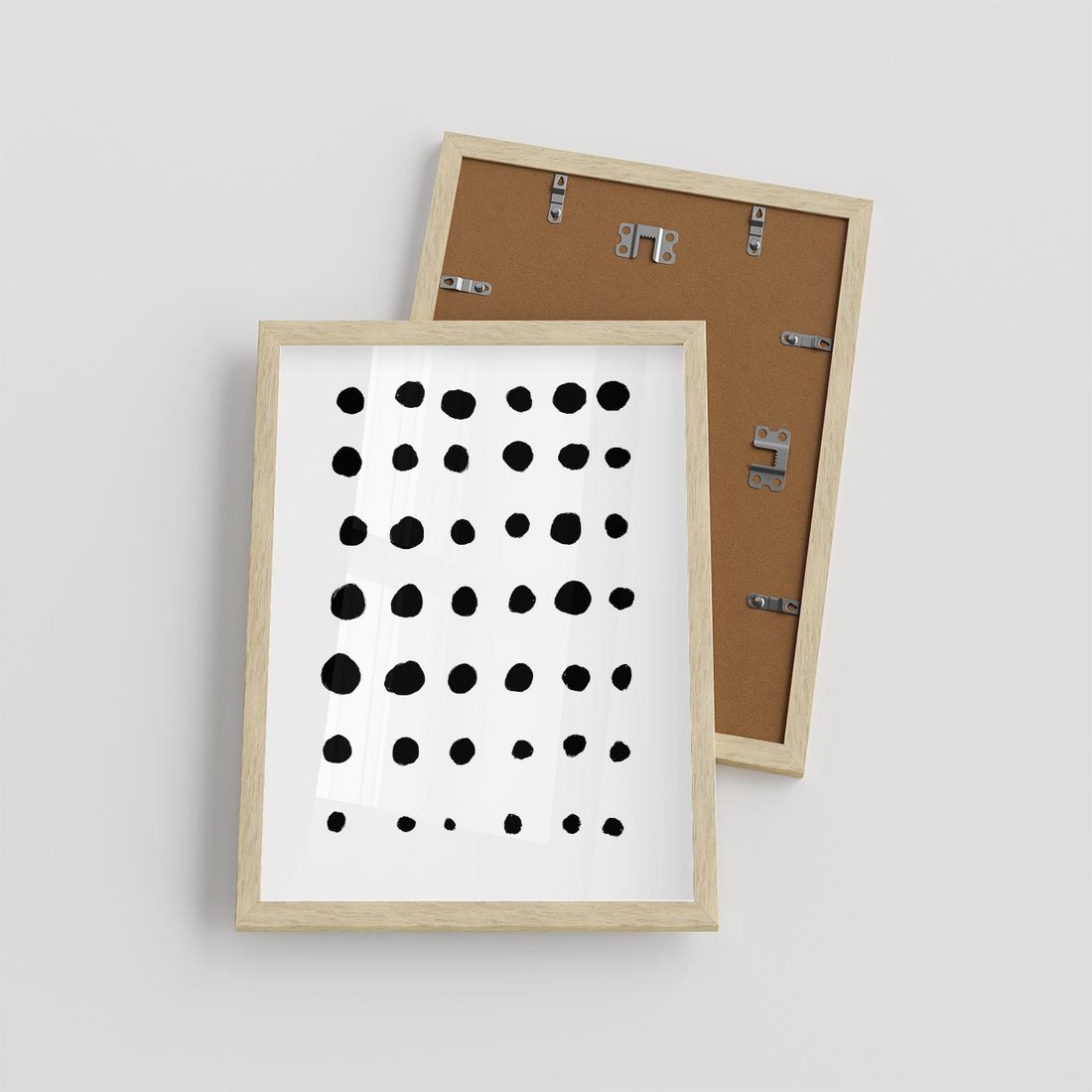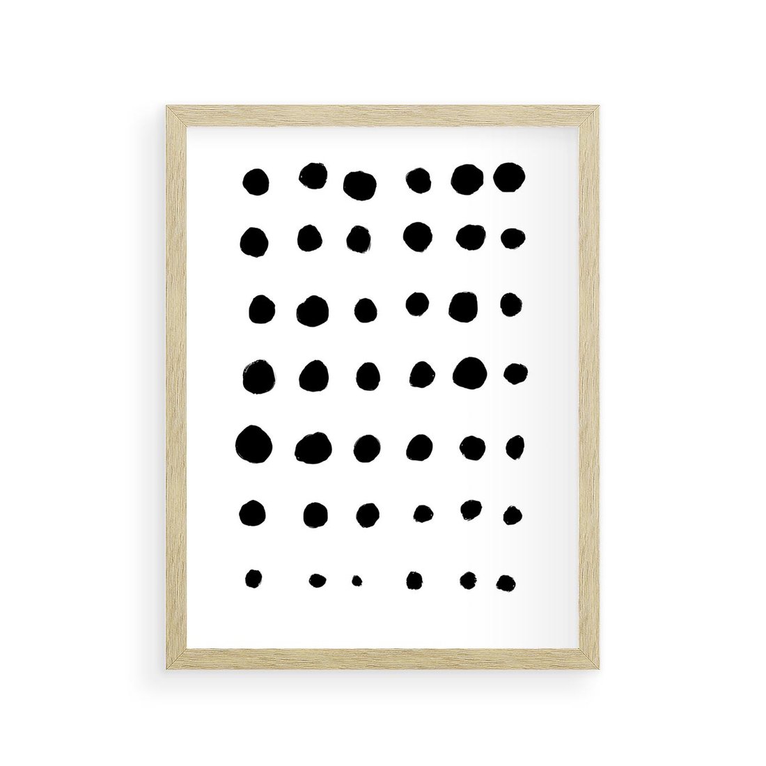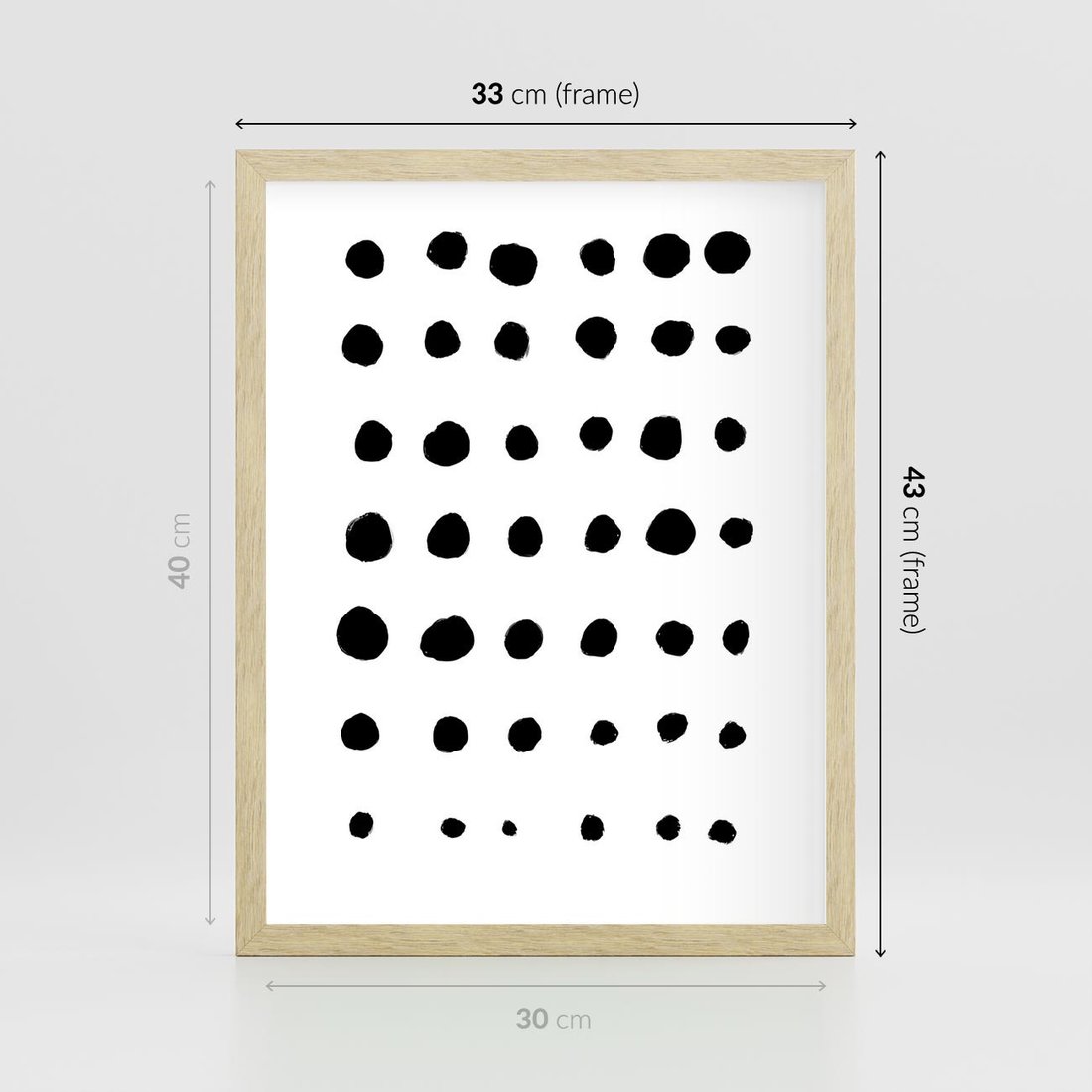Plakat w ramie 30x40 - Migocące Anomalie - abstrakcyjna kompozycja z czarnych kropek, minimalistyczny czarno bialy plakat - rama drewno