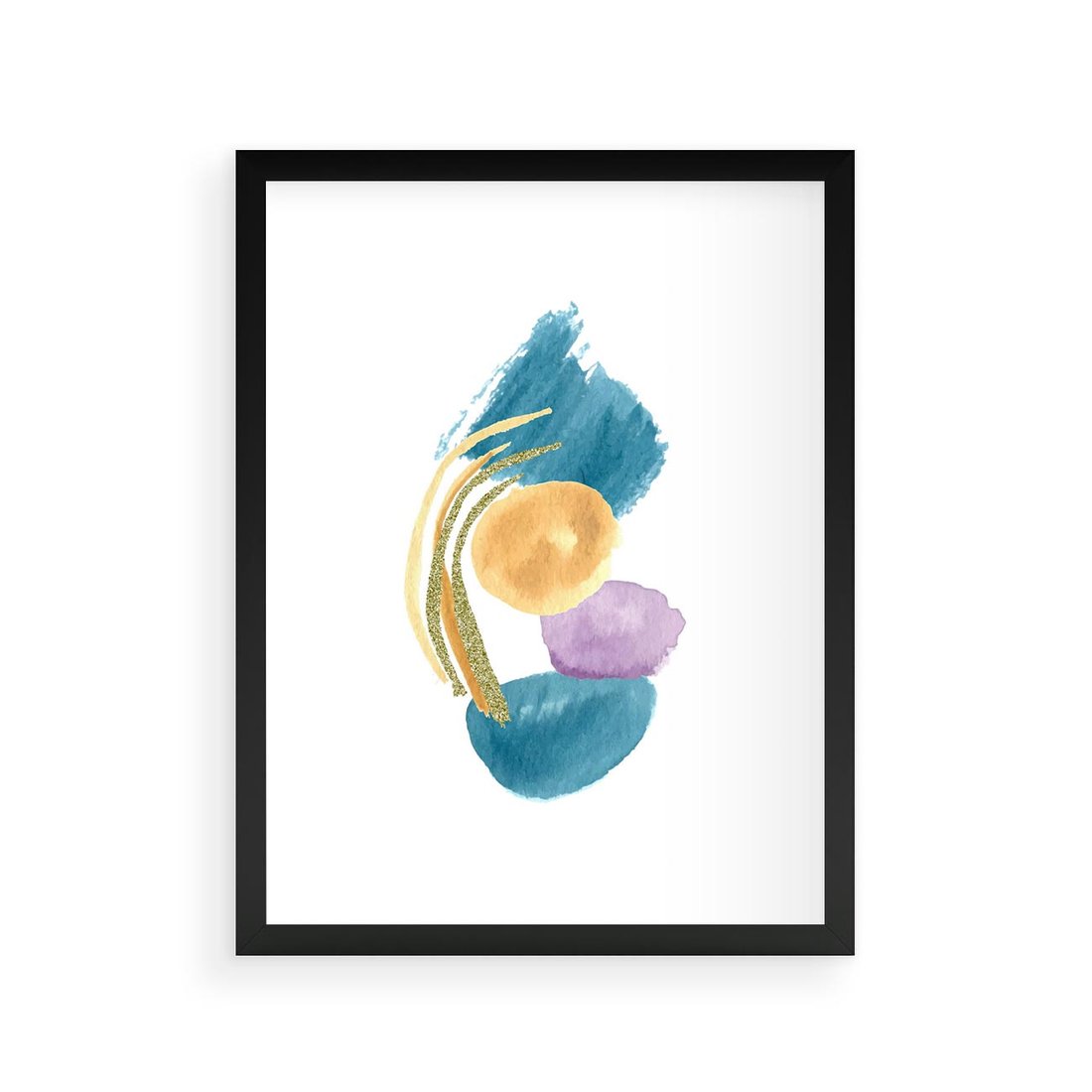 Plakat w ramie 30x40 - Migocące Barwy Akwarel - akwarelowe plamy w odcieniach błękitu, złote kreski - rama czarna