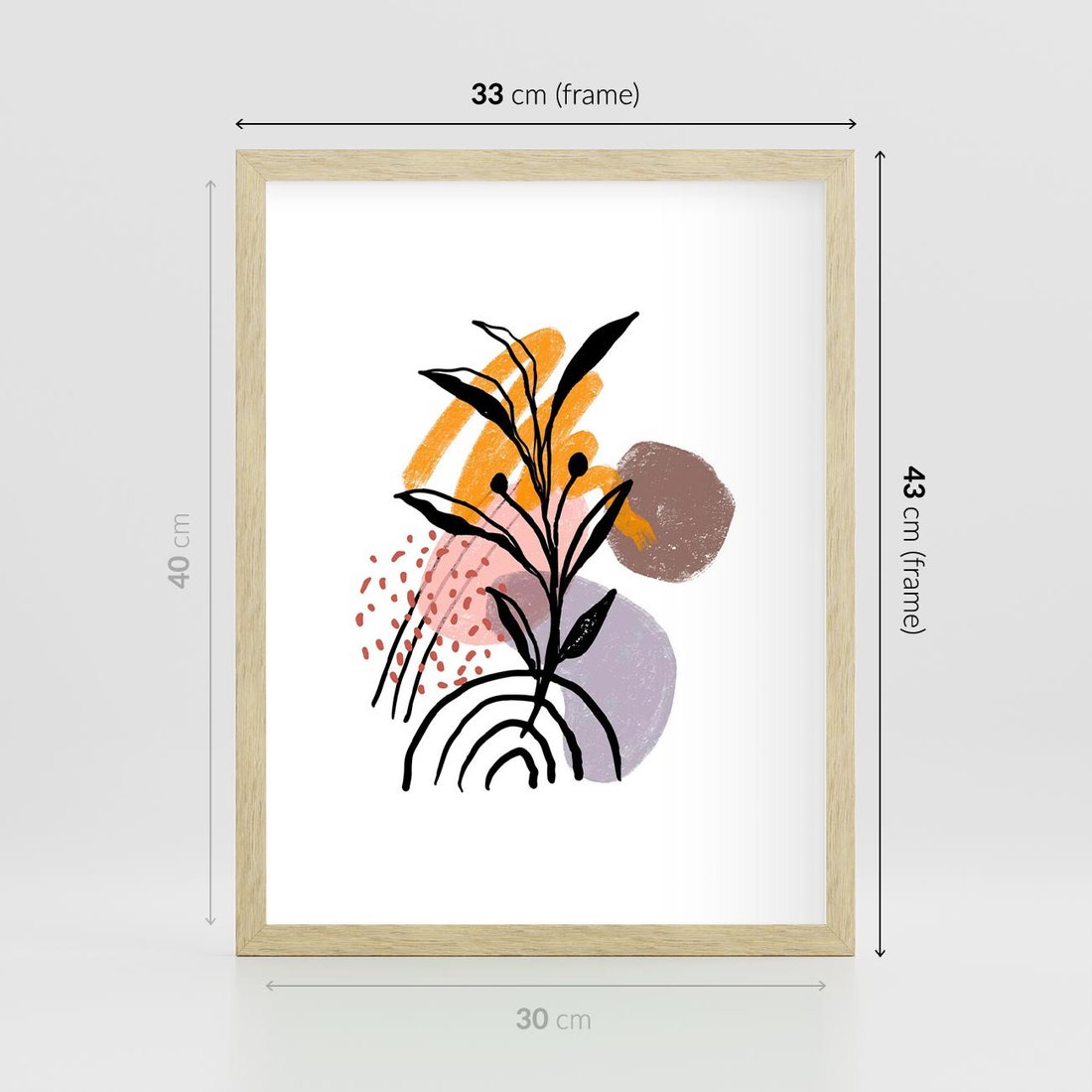Plakat w ramie 30x40 - Migocące Bezgraniczności - abstrakcyjna sztuka, liść monstery - rama drewno