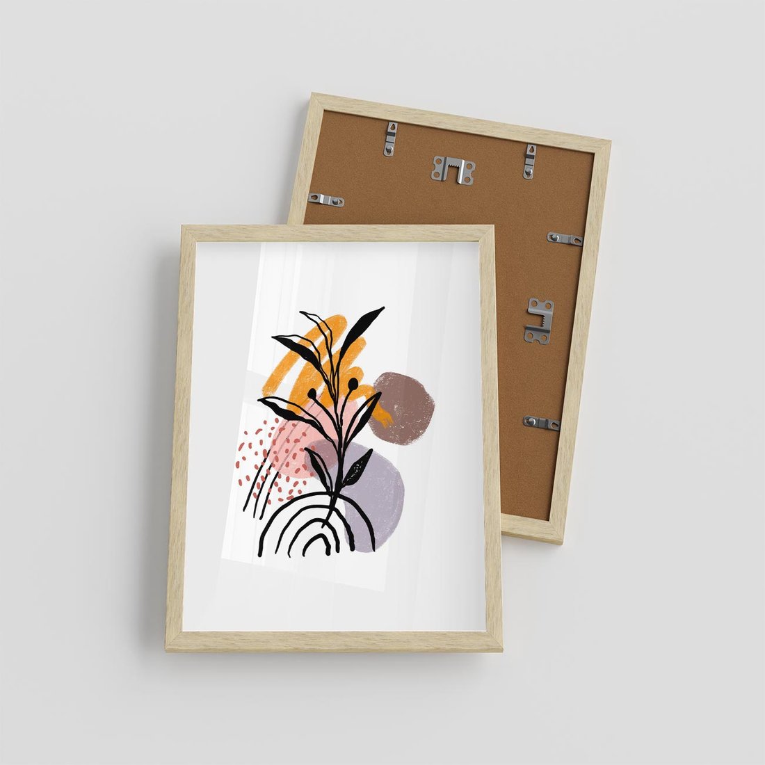 Nasza abstrakcyjna sztuka to interpretacja liścia z wykorzystaniem akwarelowych plam. To kreatywne połączenie przyrody i abstrakcji, tworzące wyjątkowy obraz wprowadzający do Twojej przestrzeni oryginalność i artystyczną atmosferę.