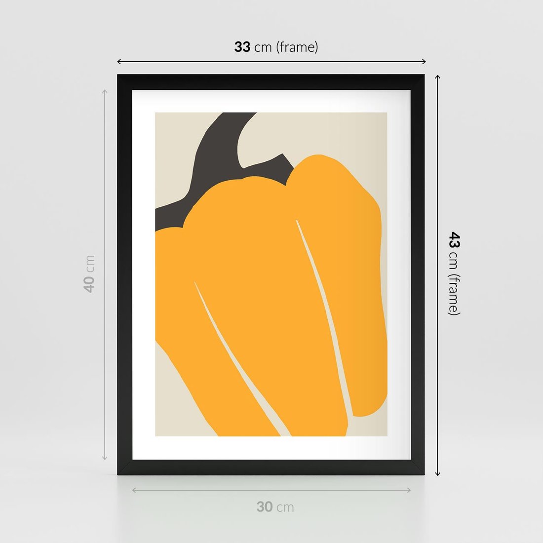 Plakat w ramie 30x40 - Migocące Formy - abstrakcyjny minimalistyczny obraz, żółta papryczka - rama czarna