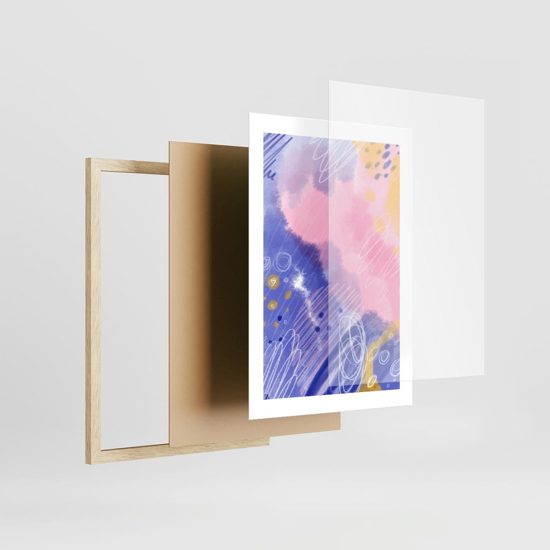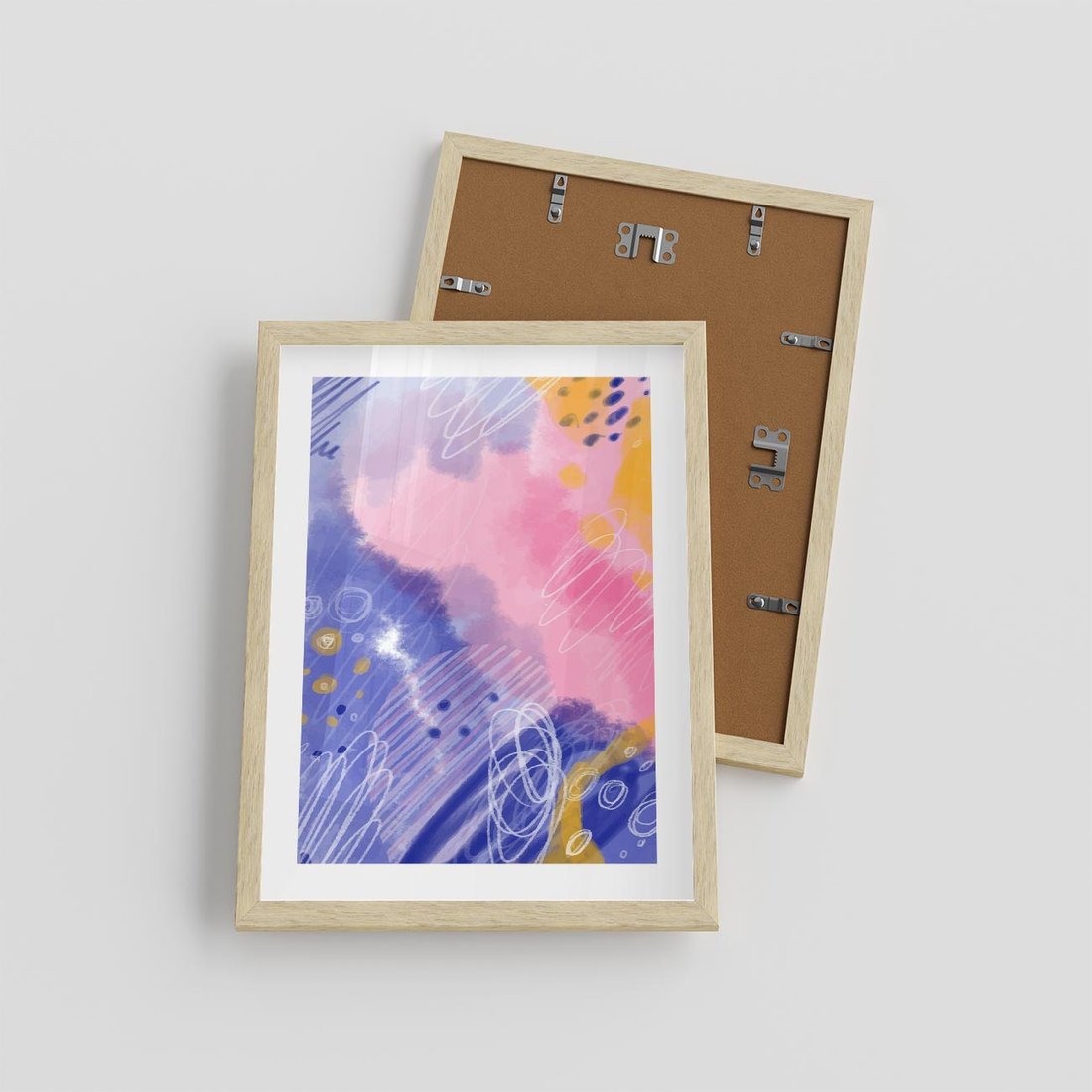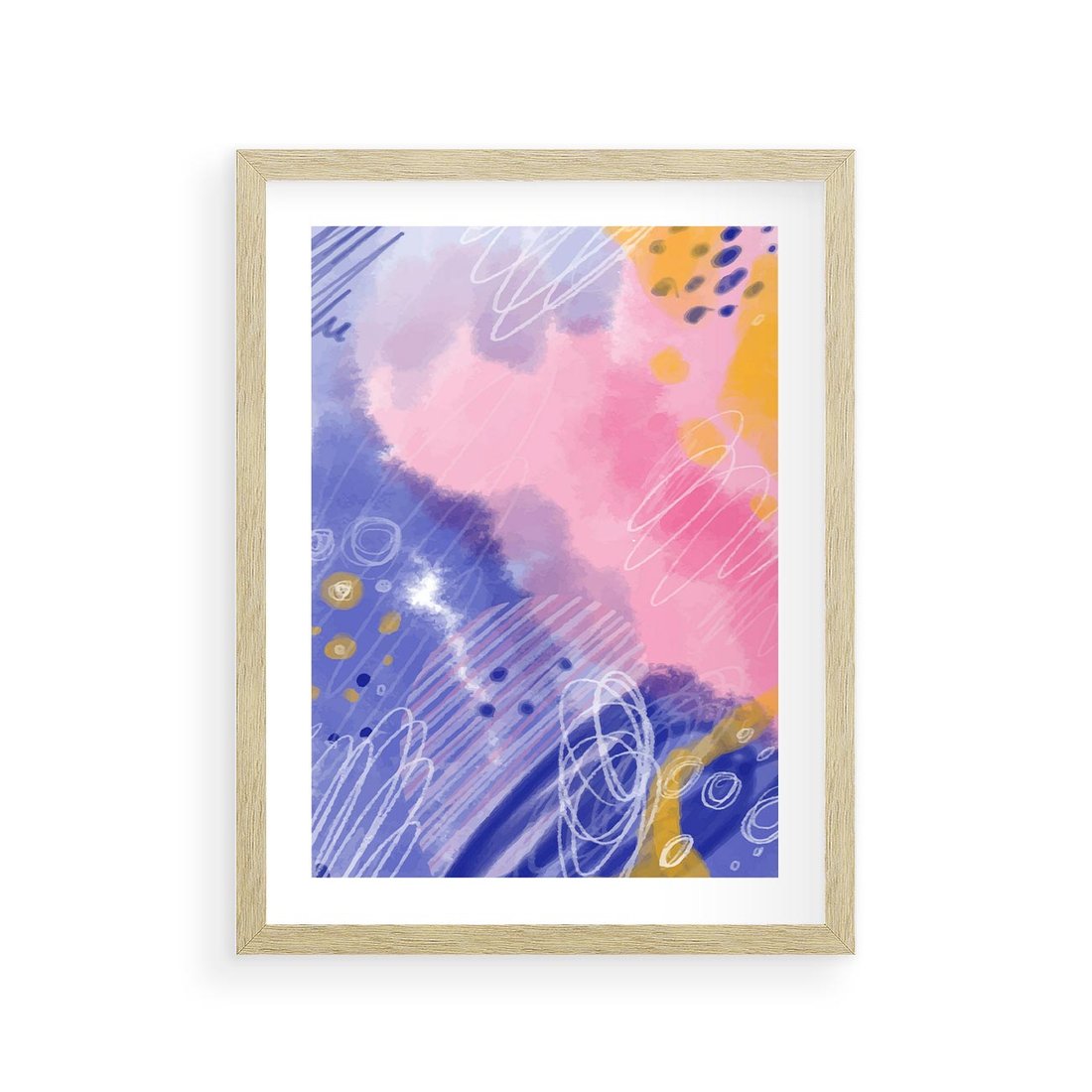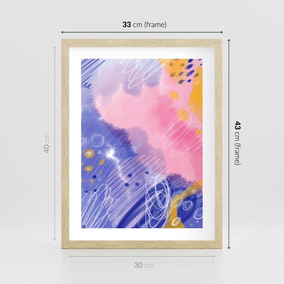 Plakat w ramie 30x40 - Migocące Granice Kształtów - abstrakcyjny plakat, pastelowe kolory - rama drewno
