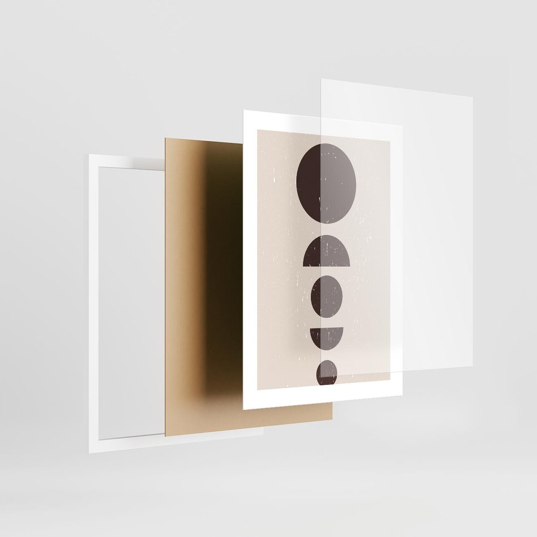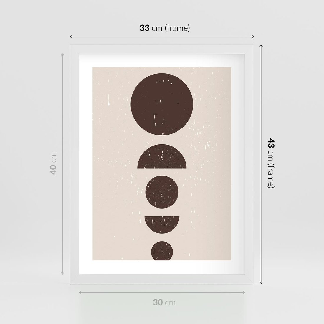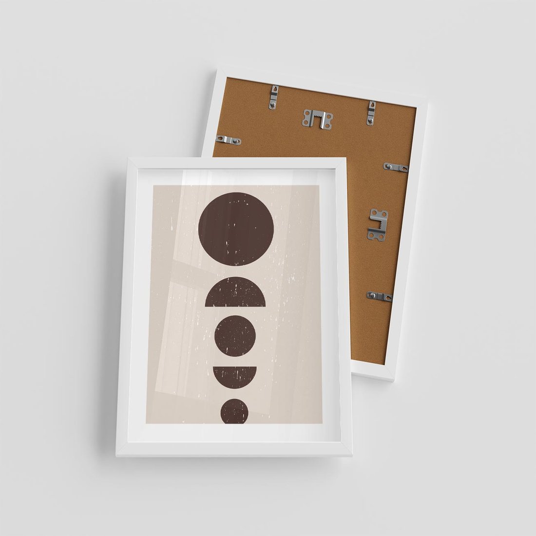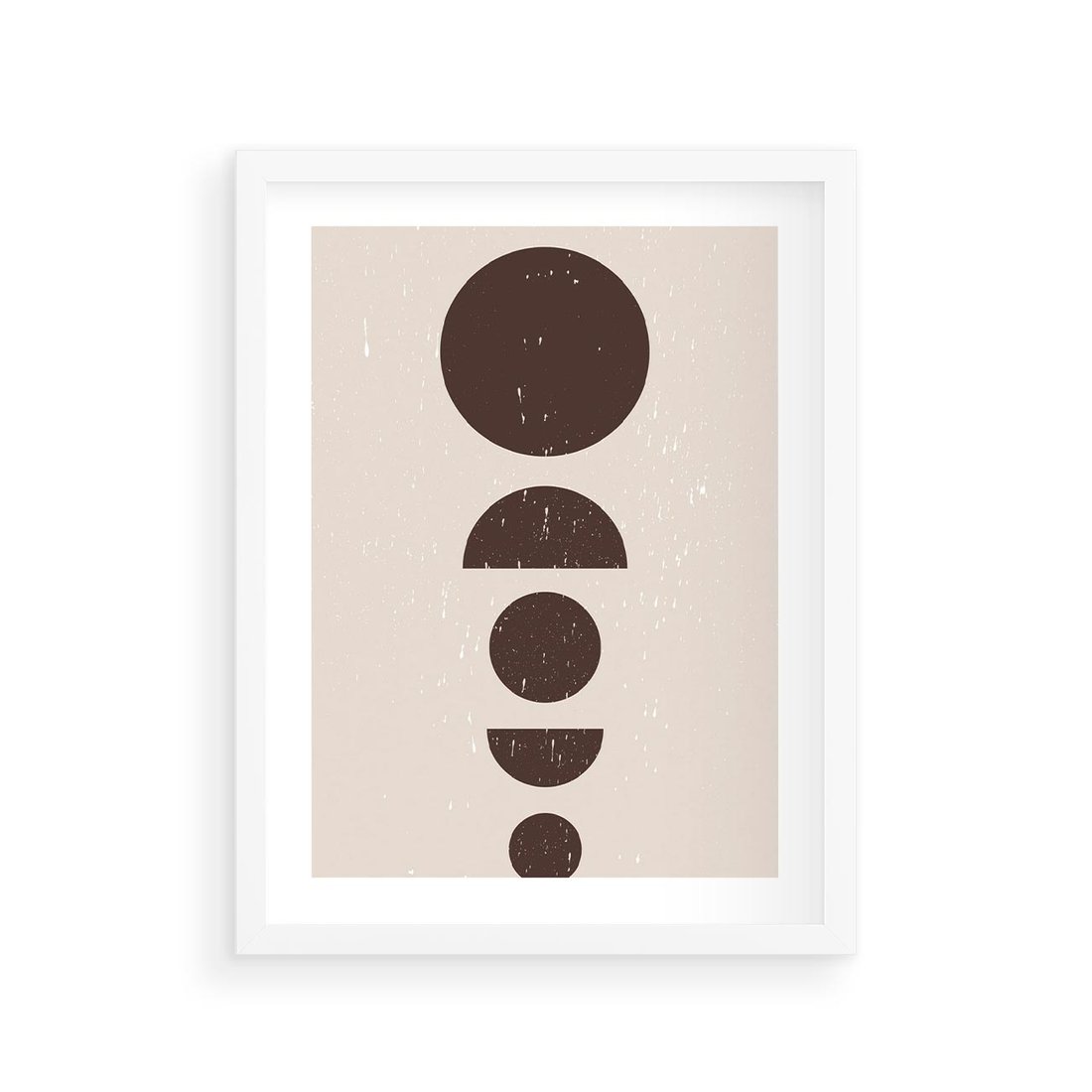 Ta nowoczesna grafika w stylu mid century prezentuje brązowe koła i półkola w minimalistycznym ujęciu, tworząc unikalny design o subtelnym wyrazie.