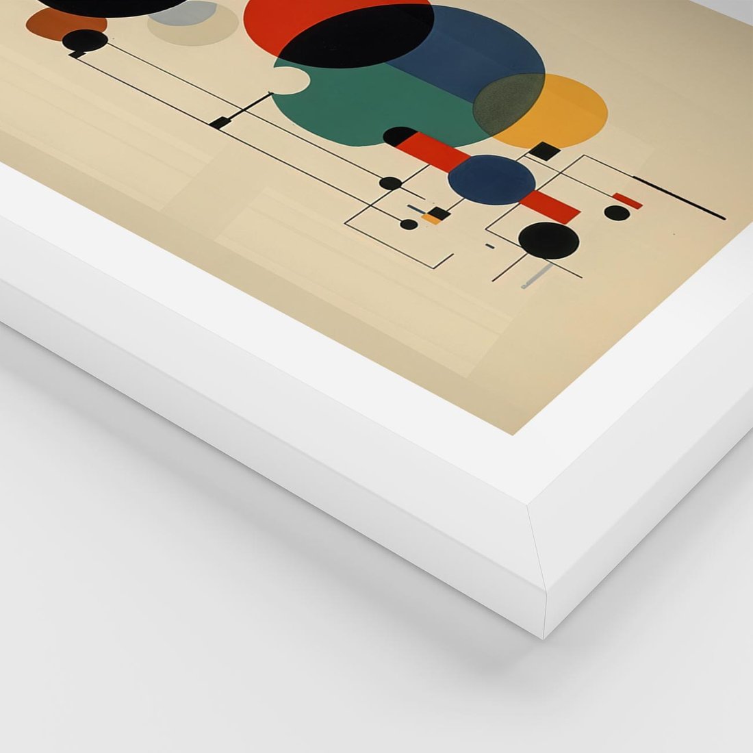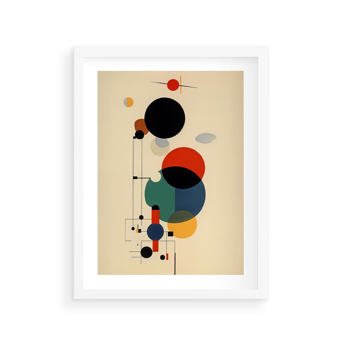 Ta abstrakcyjna geometryczna kompozycja inspirowana stylem Kandinsky'ego łączy w sobie elementy kół i linii, tworząc dynamiczną i ekspresyjną wizję. Ten wpływ dodaje głębi i emocji temu obrazowi.