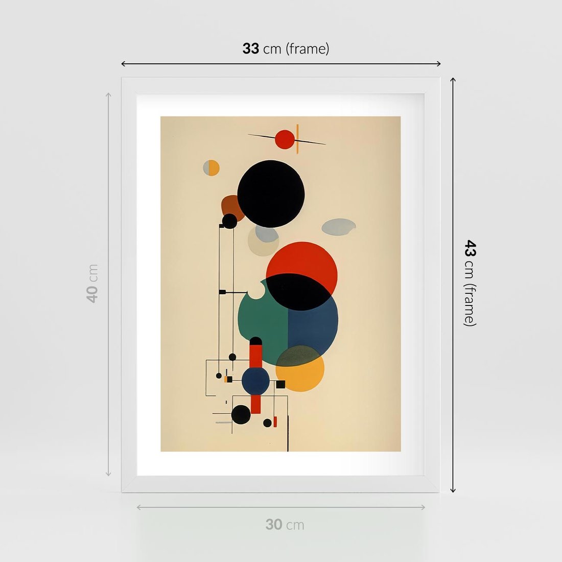 Plakat w ramie 30x40 - Migocące Impresje Odniesień - abstrakcyjna geometryczna kompozycja, koła linie - rama biała
