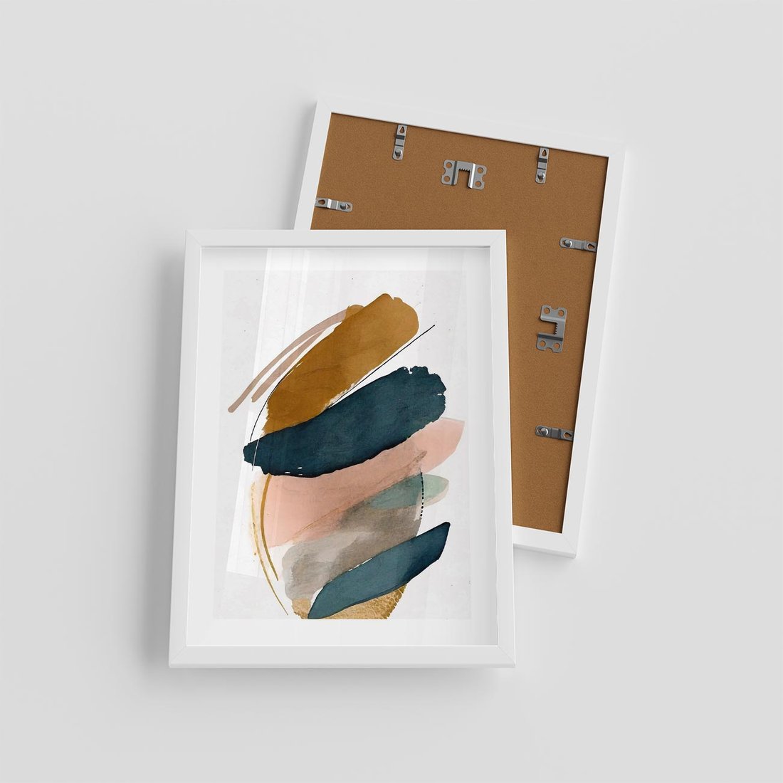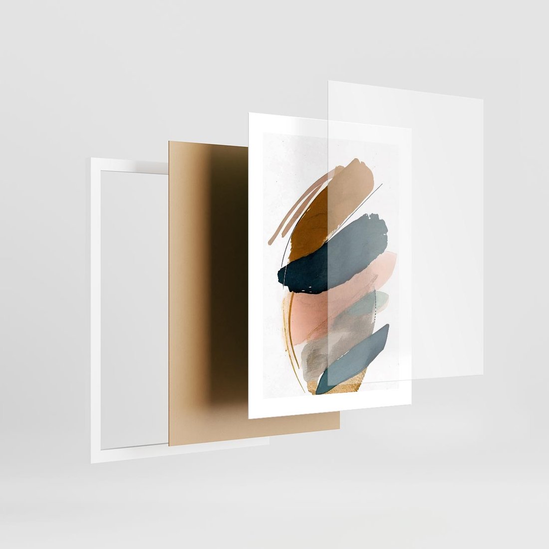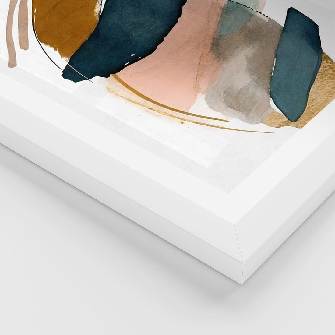 Plakat w ramie 30x40 - Migocące Impresje Przestrzeni - abstrakcyjny obraz, kolory ciepłe - rama biała