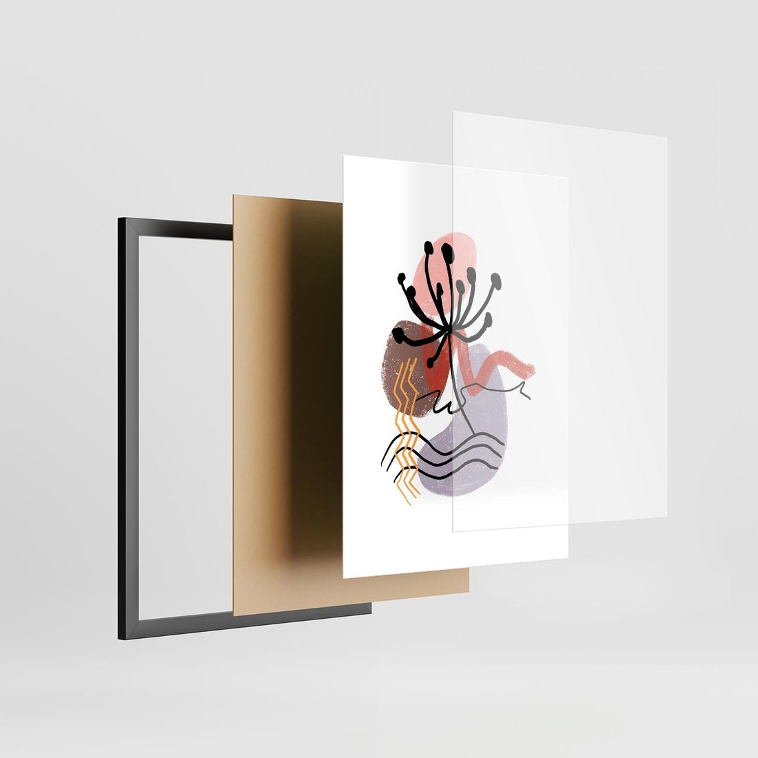Plakat w ramie 30x40 - Migocące Odsłony - abstrakcyjna sztuka, liść dmuchawiec - rama czarna