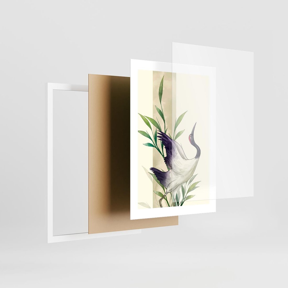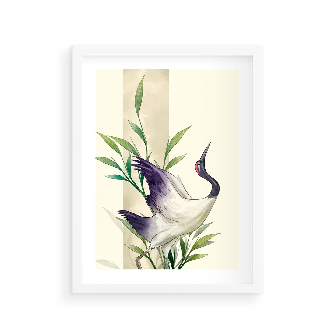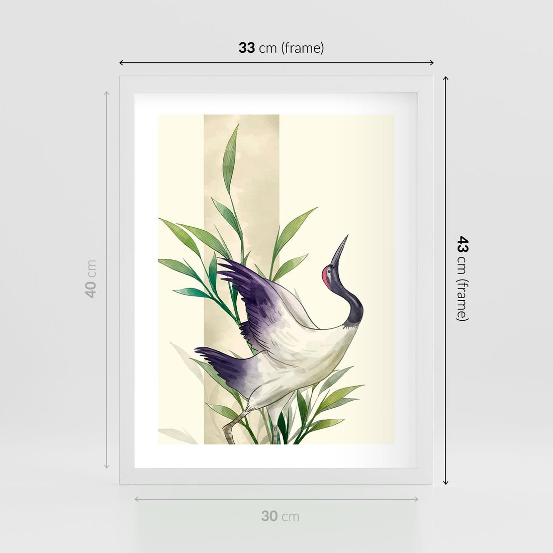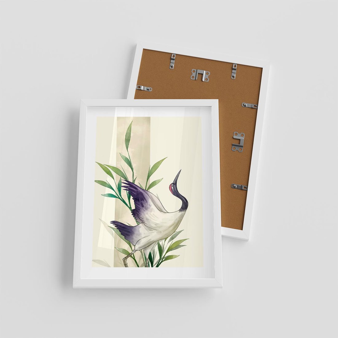 Plakat w ramie 30x40 - Migocące Ptaki - japońska sztuka, ptak - rama biała