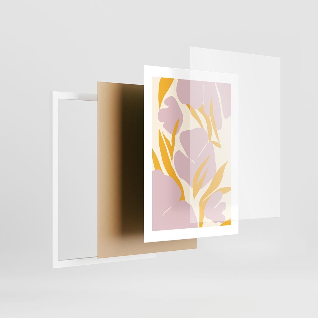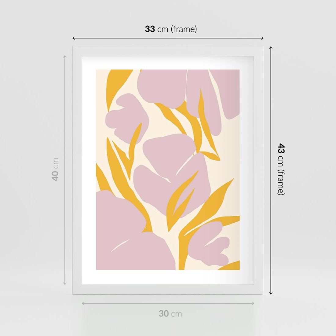 Plakat w ramie 30x40 - Migocące Wibracje - abstrakcyjne kwiaty, pastelowe kolory - rama biała