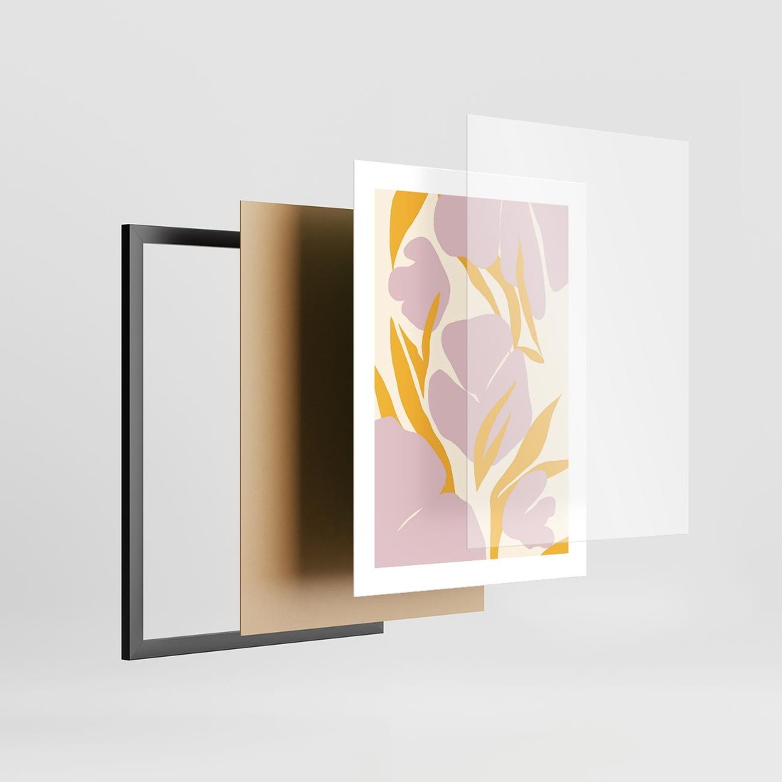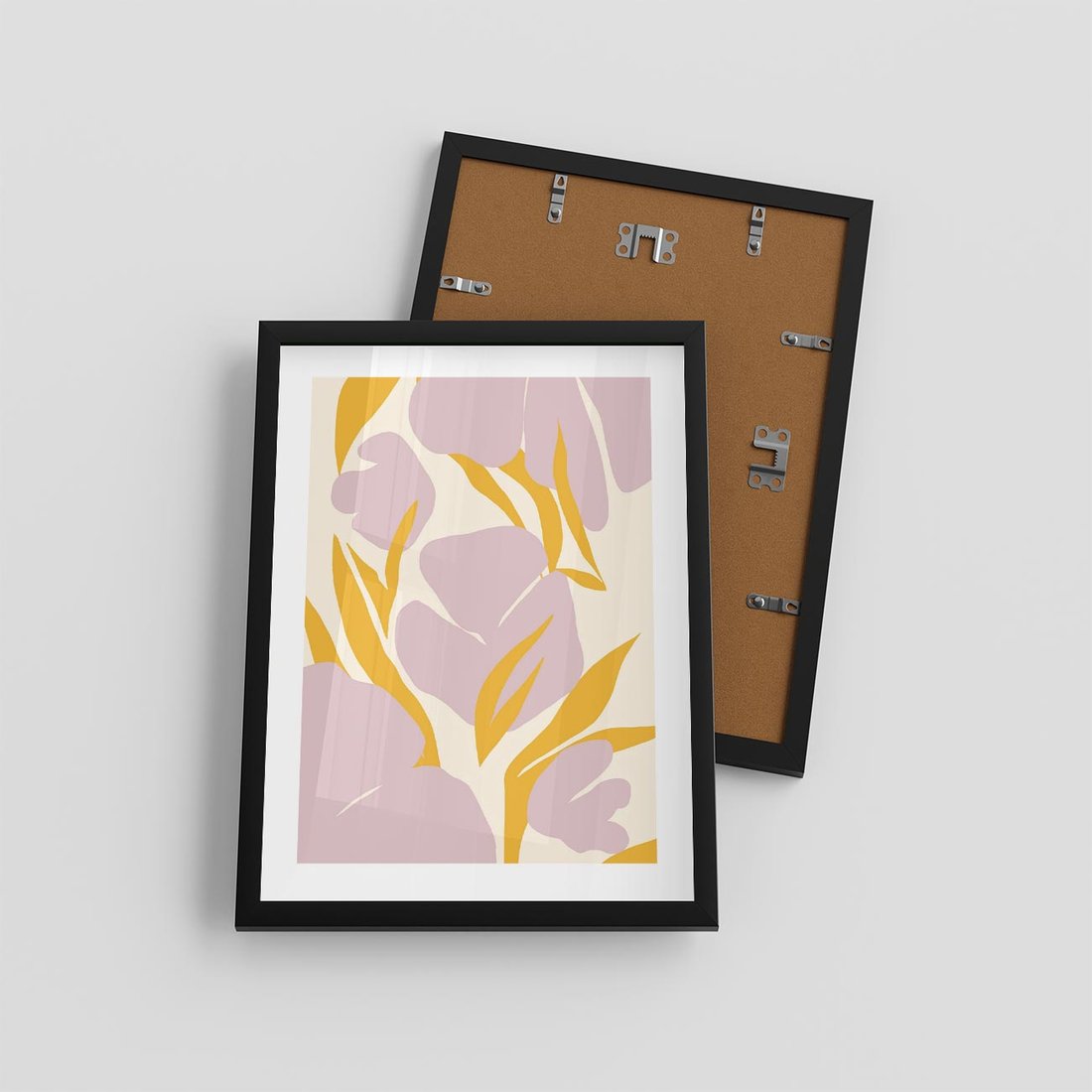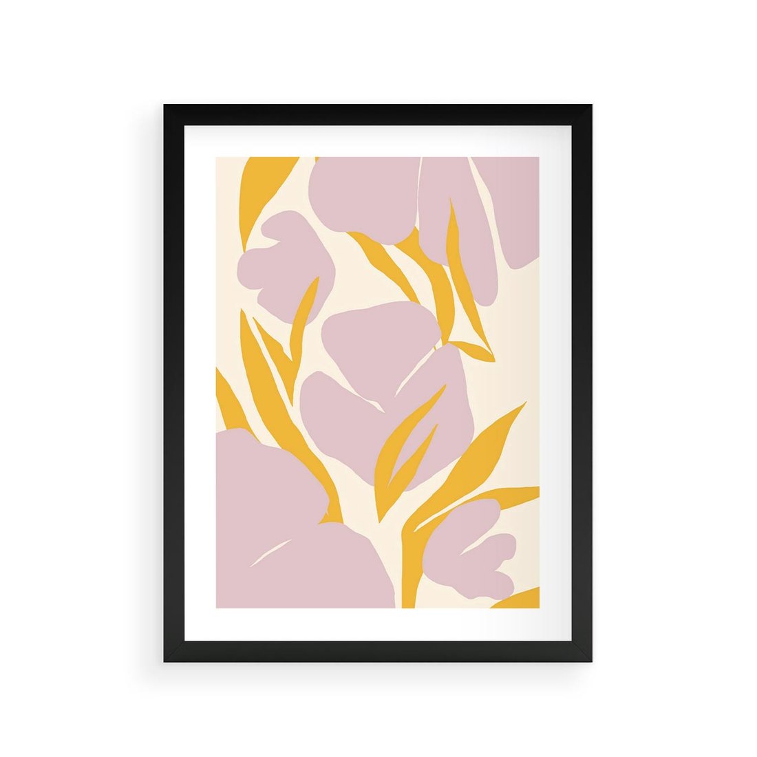 Plakat w ramie 30x40 - Migocące Wibracje - abstrakcyjne kwiaty, pastelowe kolory - rama czarna
