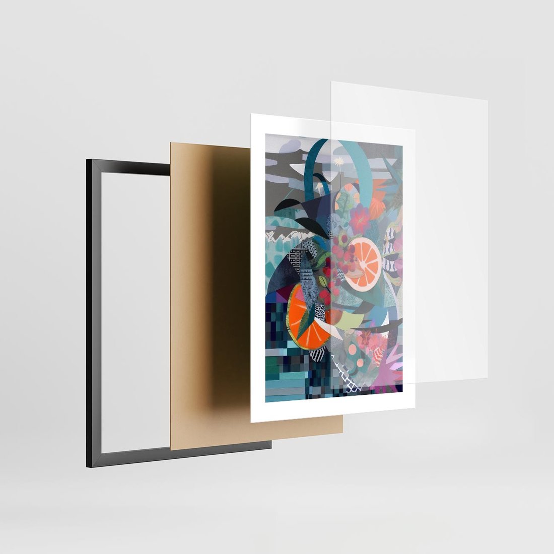 Plakat w ramie 30x40 - Migocące Widoki Harmonii - abstrakcyjny obraz, jak picasso - rama czarna