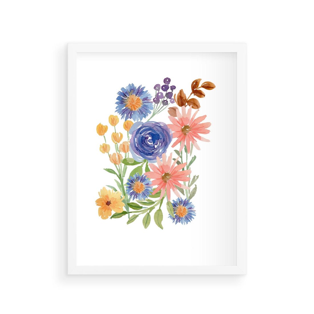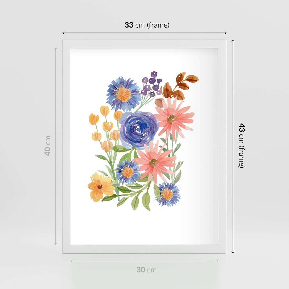 Plakat w ramie 30x40 - Migocące Widoki Kwiatów - akwarelowe polne kwiaty, minimalistyczny plakat - rama biała