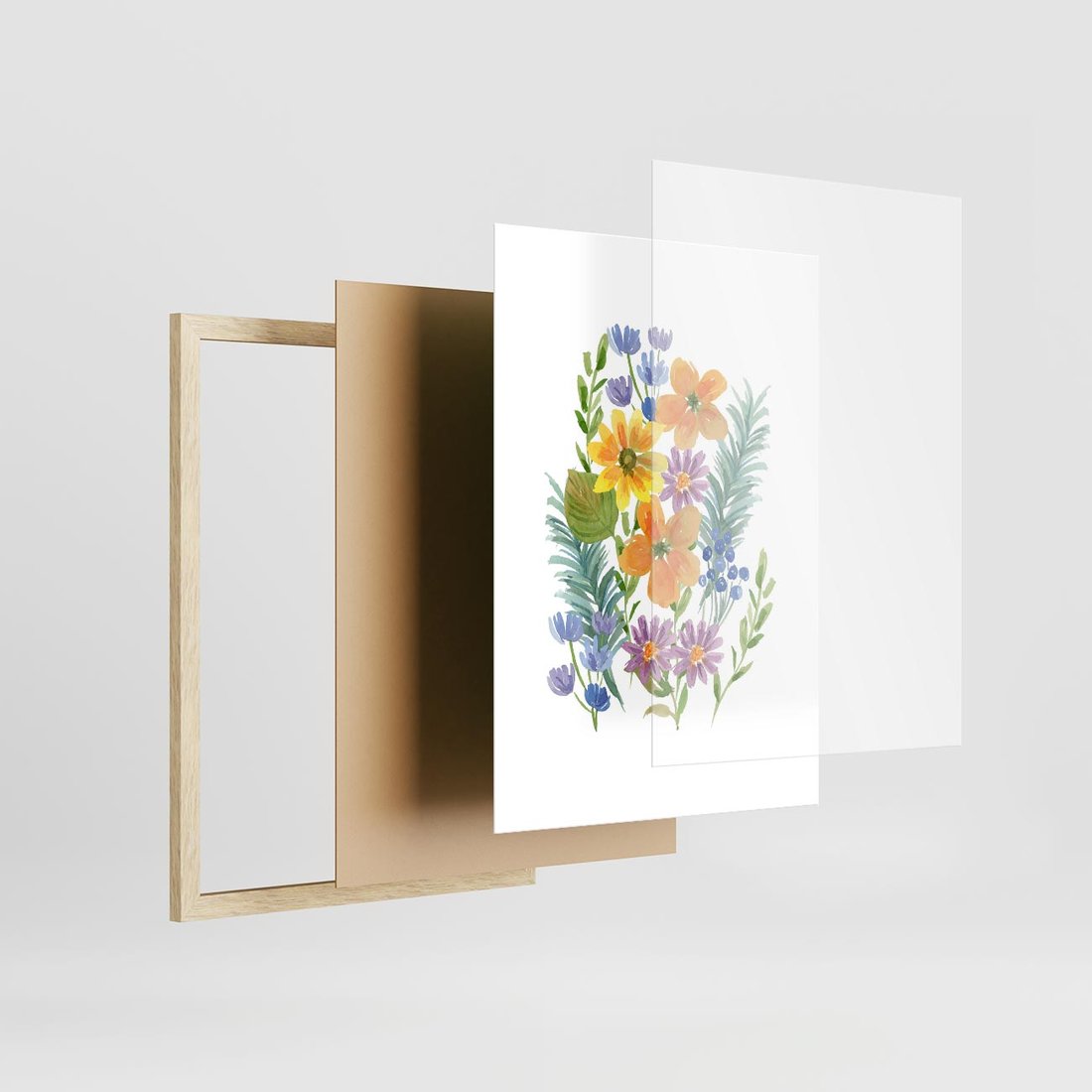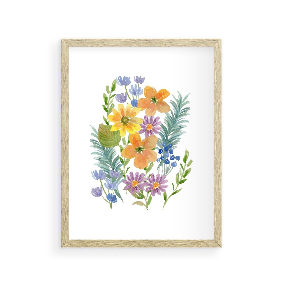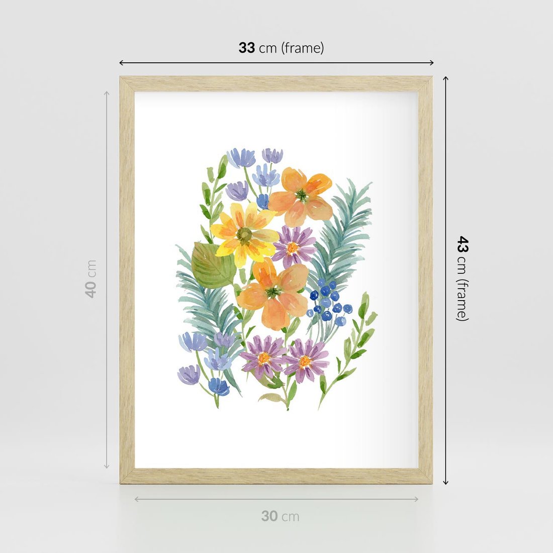 Plakat w ramie 30x40 - Migocące Widoki Kwiatów - akwarelowe polne kwiaty, minimalistyczny plakat - rama drewno