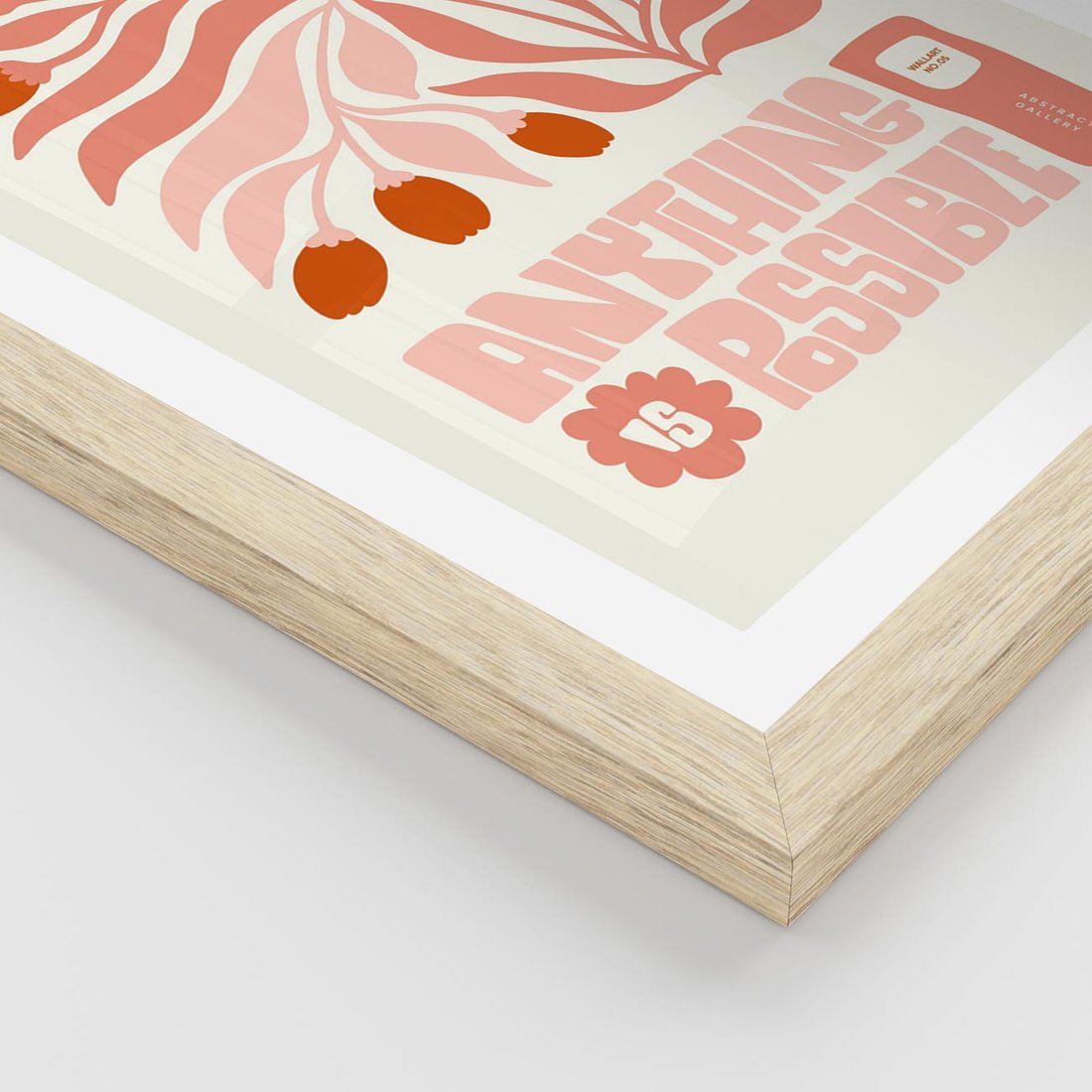 Plakat w ramie 30x40 - Migotliwa Euforia - kompozycja w łososiowym kolorze, kwiaty - rama drewno