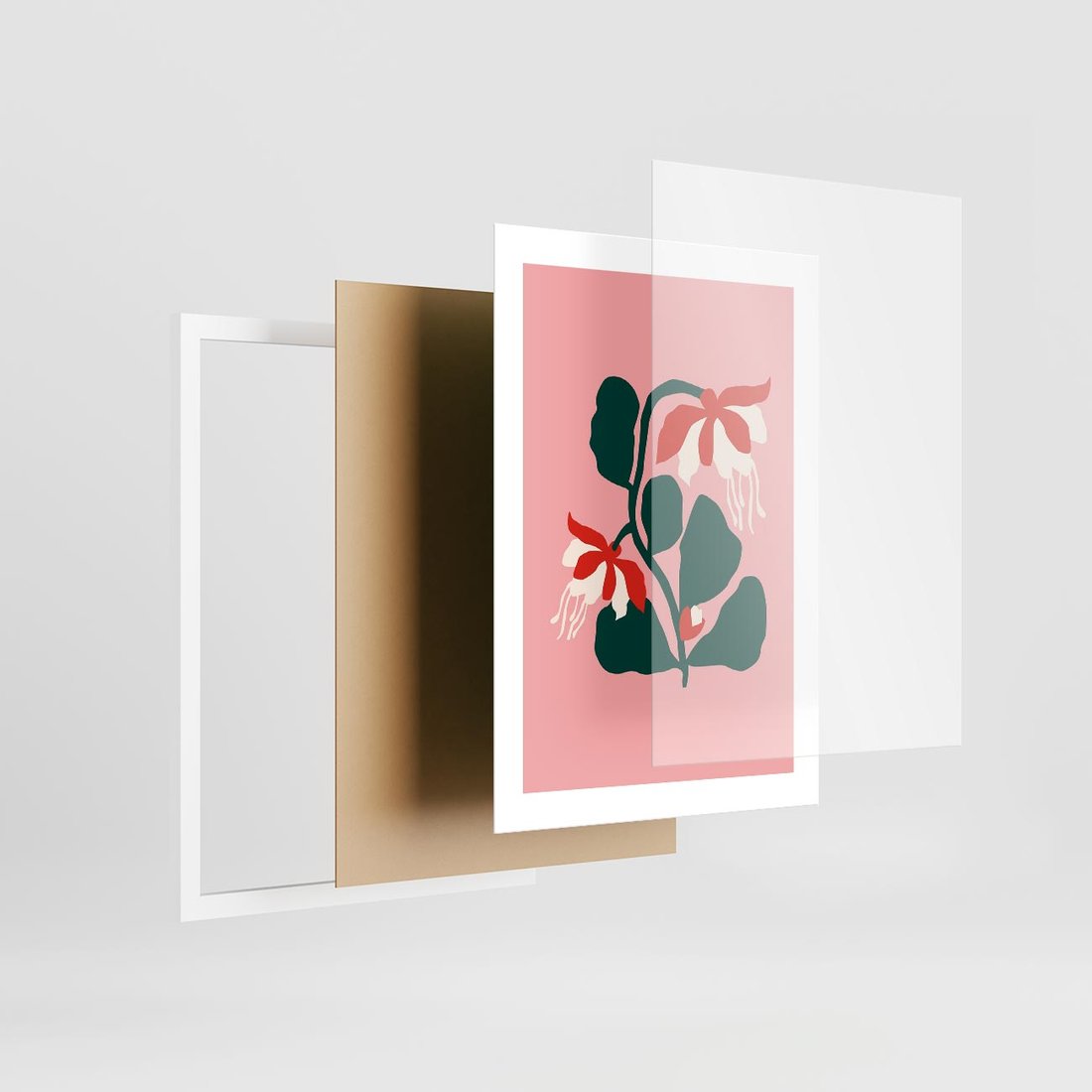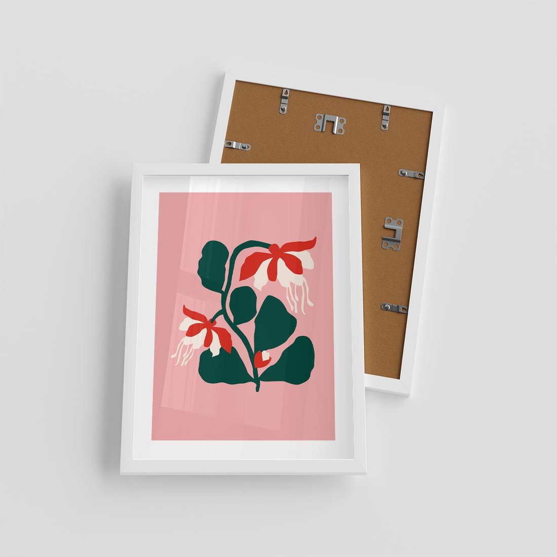 Ten nowoczesny plakat prezentuje abstrakcyjne kwiaty na delikatnym różowym tle. Sztuka ta tworzy spójność i estetykę, przynosząc do przestrzeni wizualną przyjemność oraz inspirujący akcent kreatywności.