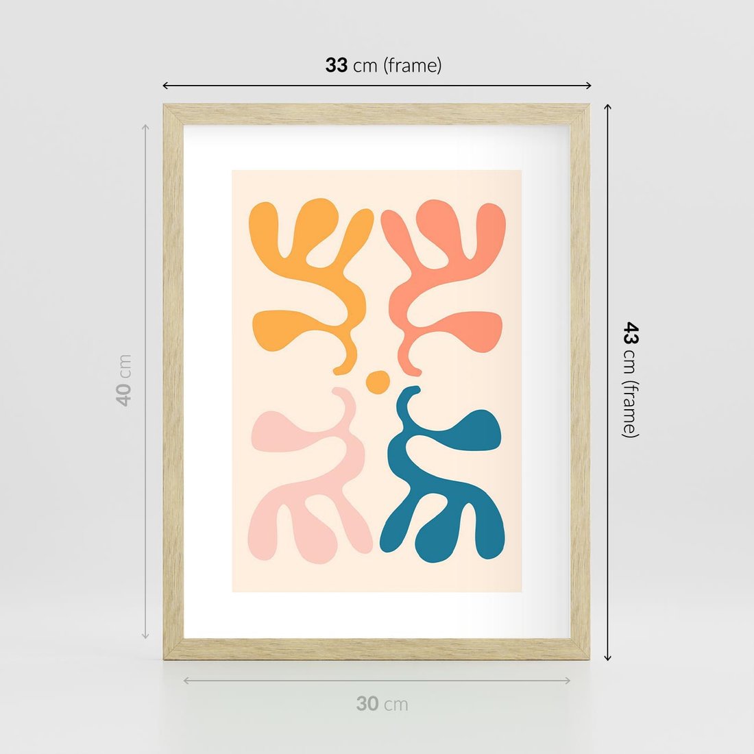 Plakat w ramie 30x40 - Migotliwe Akwarelowe Kontury - absrakcyjne dziwne formy, nowoczesny plakat - rama drewno