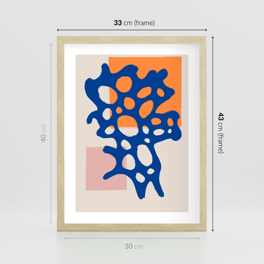 Plakat w ramie 30x40 - Migotliwe Nastroje - abstrakcyjna niebieska forma, dziwne kształty - rama drewno