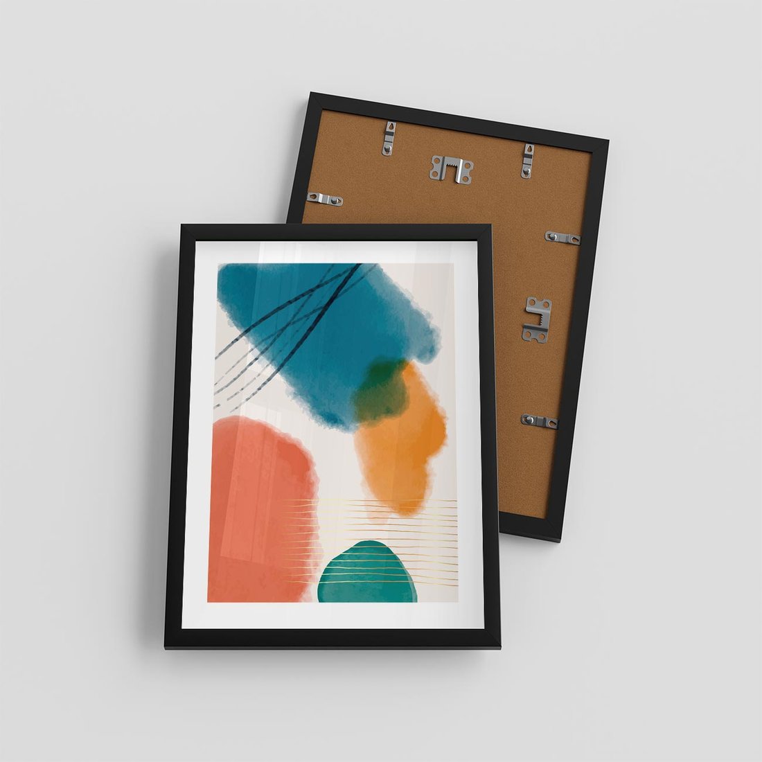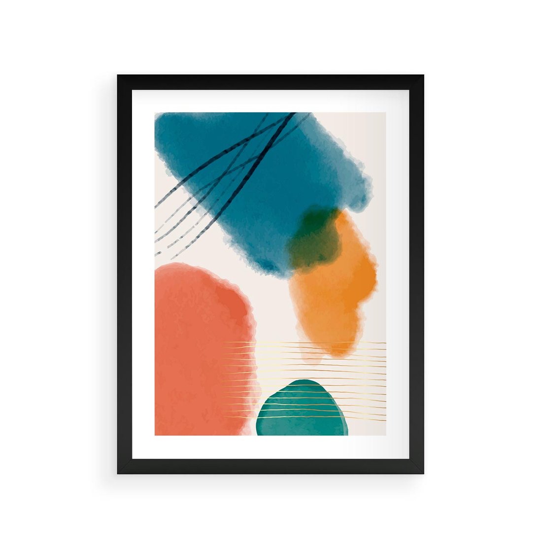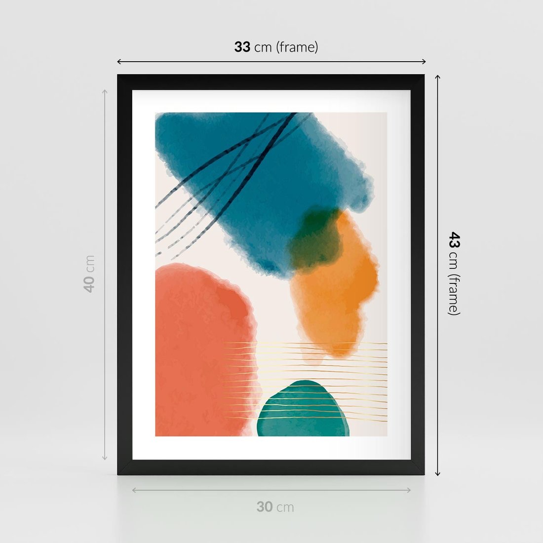 Plakat w ramie 30x40 - Migotliwe Pochwycenia - abstrakcyjne kolorowe plamy, akwarela - rama czarna