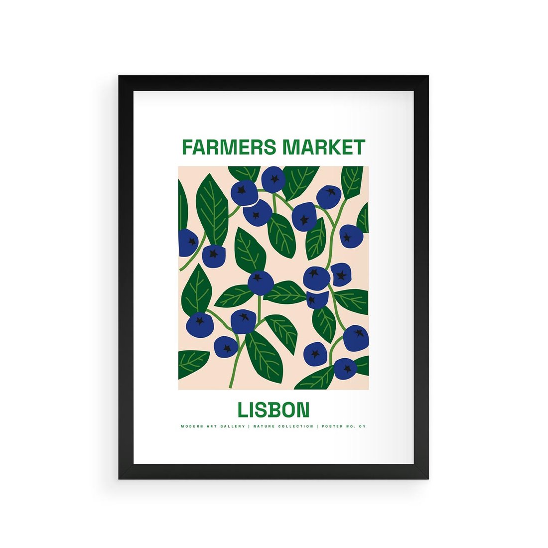 Ten plakat to połączenie sztuki nowoczesnej z naturą, prezentujący borówki, jagody i rośliny w wyrazistej kompozycji. Przy użyciu nowoczesnej typografii, wprowadza do przestrzeni świeżość i naturalny urok, przypominając o pięknie otaczającego nas świata.