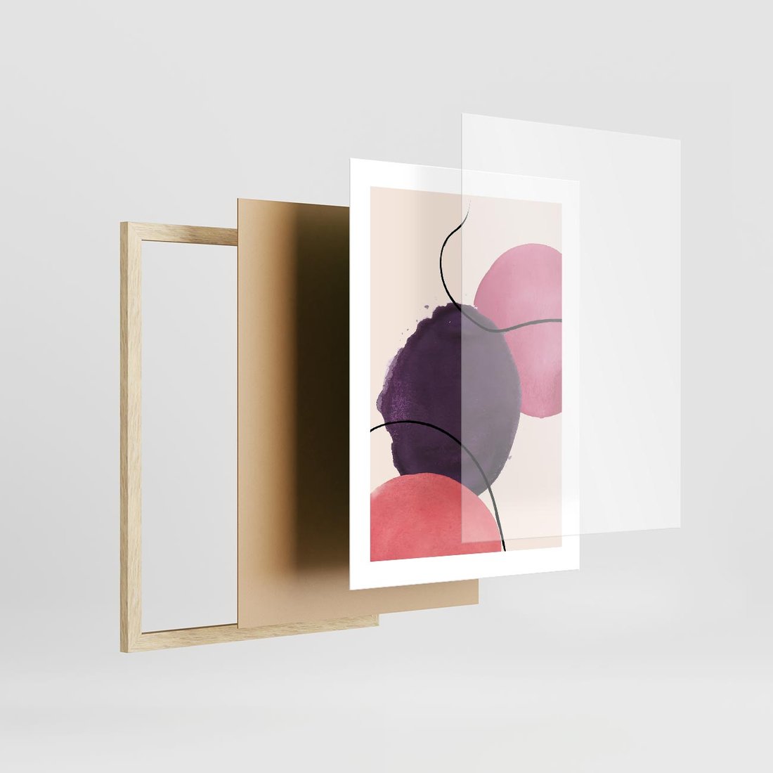 Plakat w ramie 30x40 - Migotliwe Widzenia - abstrakcyjne akwarelowe plamy, nieregularne linie - rama drewno