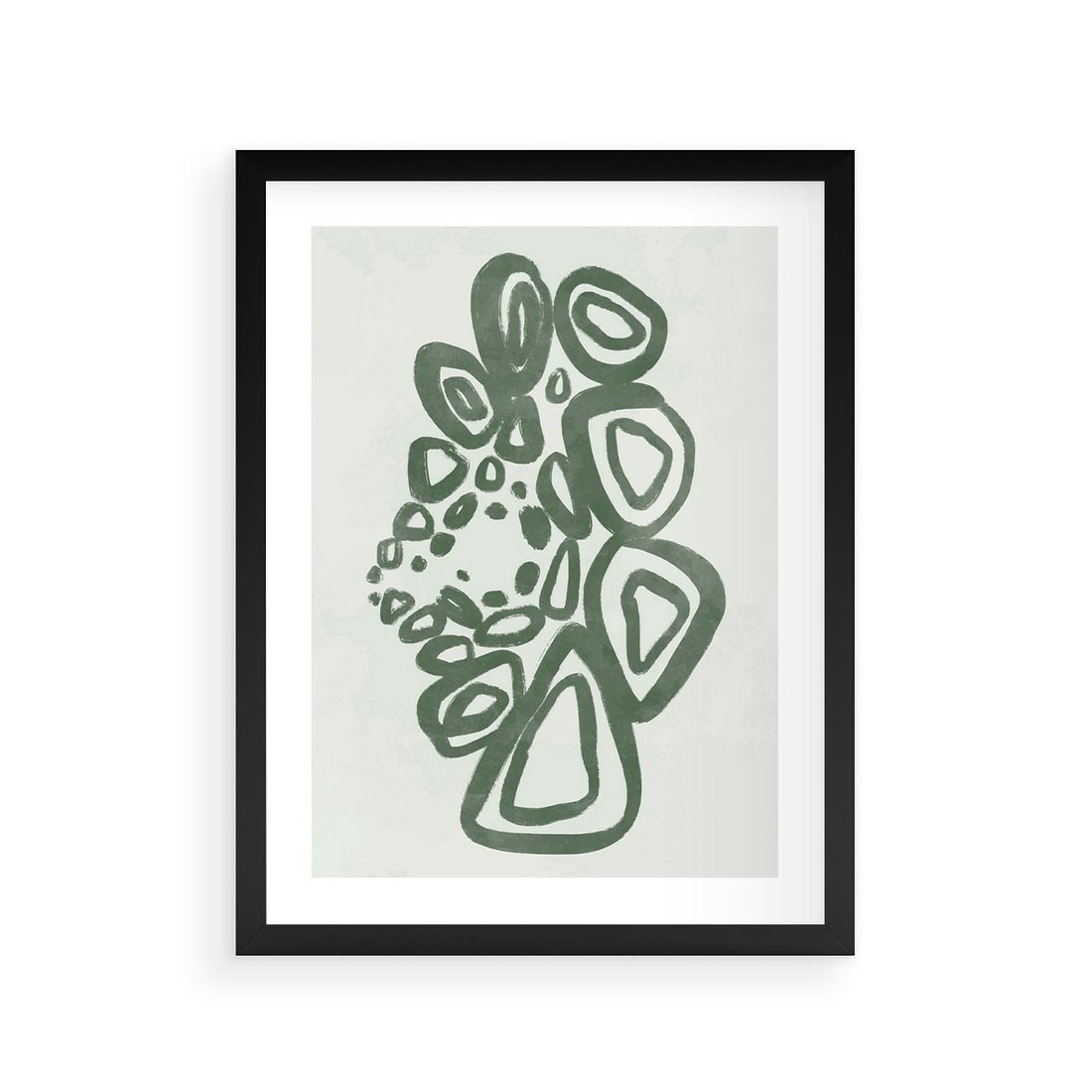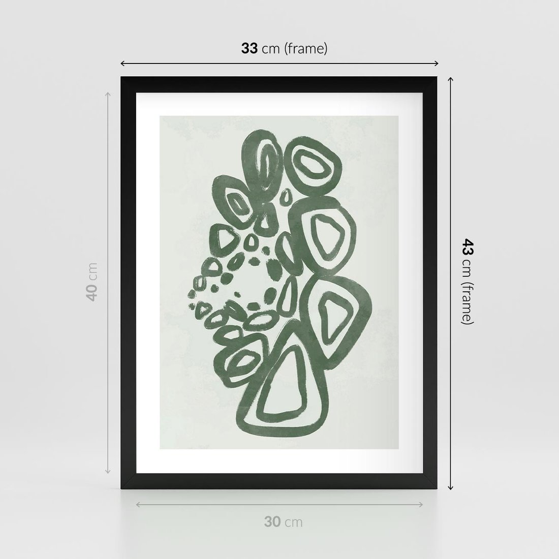 Plakat w ramie 30x40 - Migotliwe Widzenia Zieleni - zielona abstrakcja, zgaszona zieleń - rama czarna