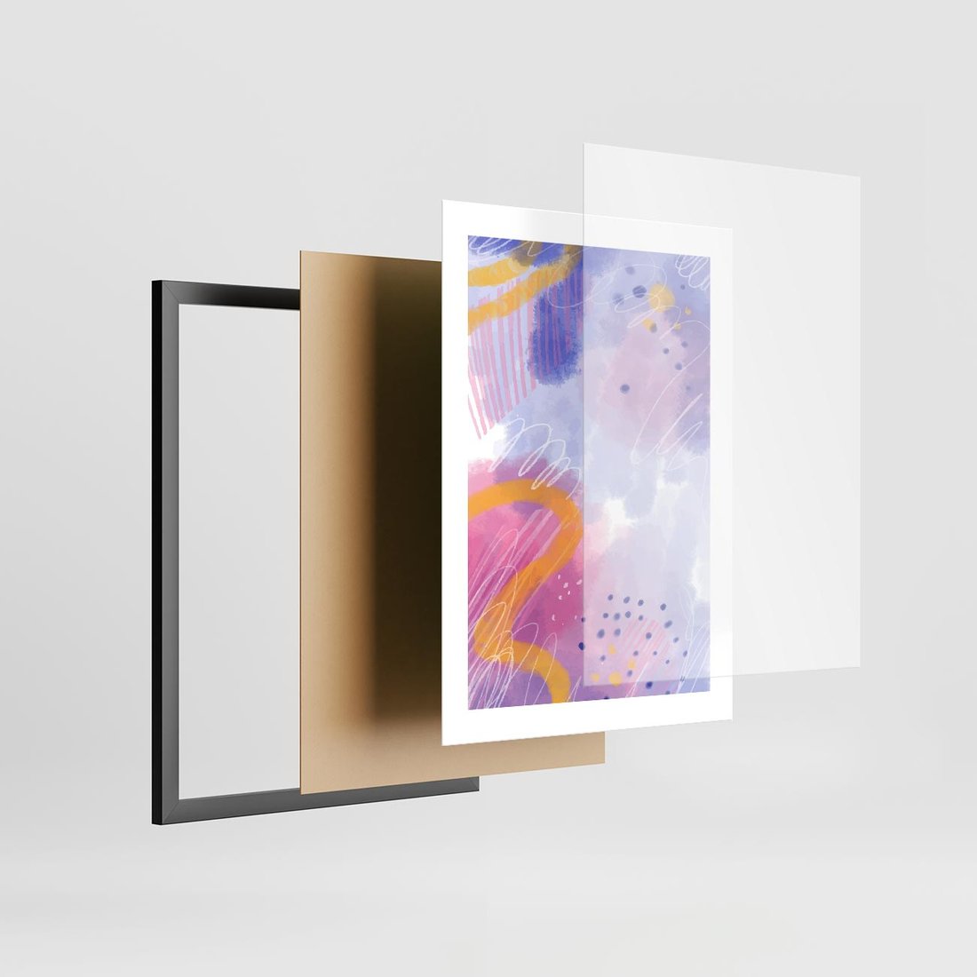 Plakat w ramie 30x40 - Migotliwe Wnętrza Kształtów - abstrakcyjny plakat, pastelowe kolory - rama czarna