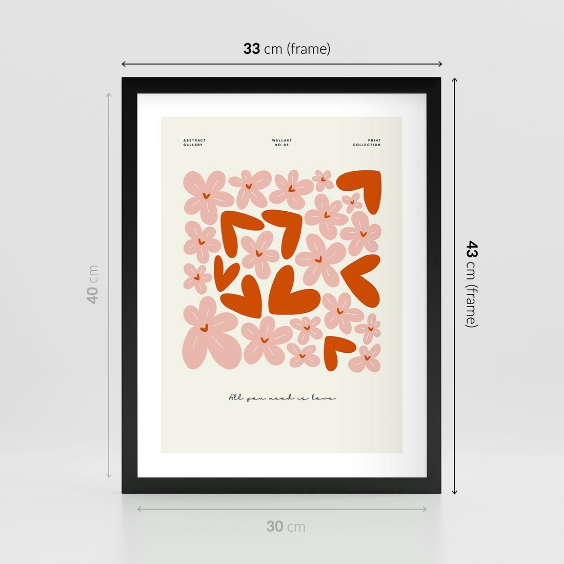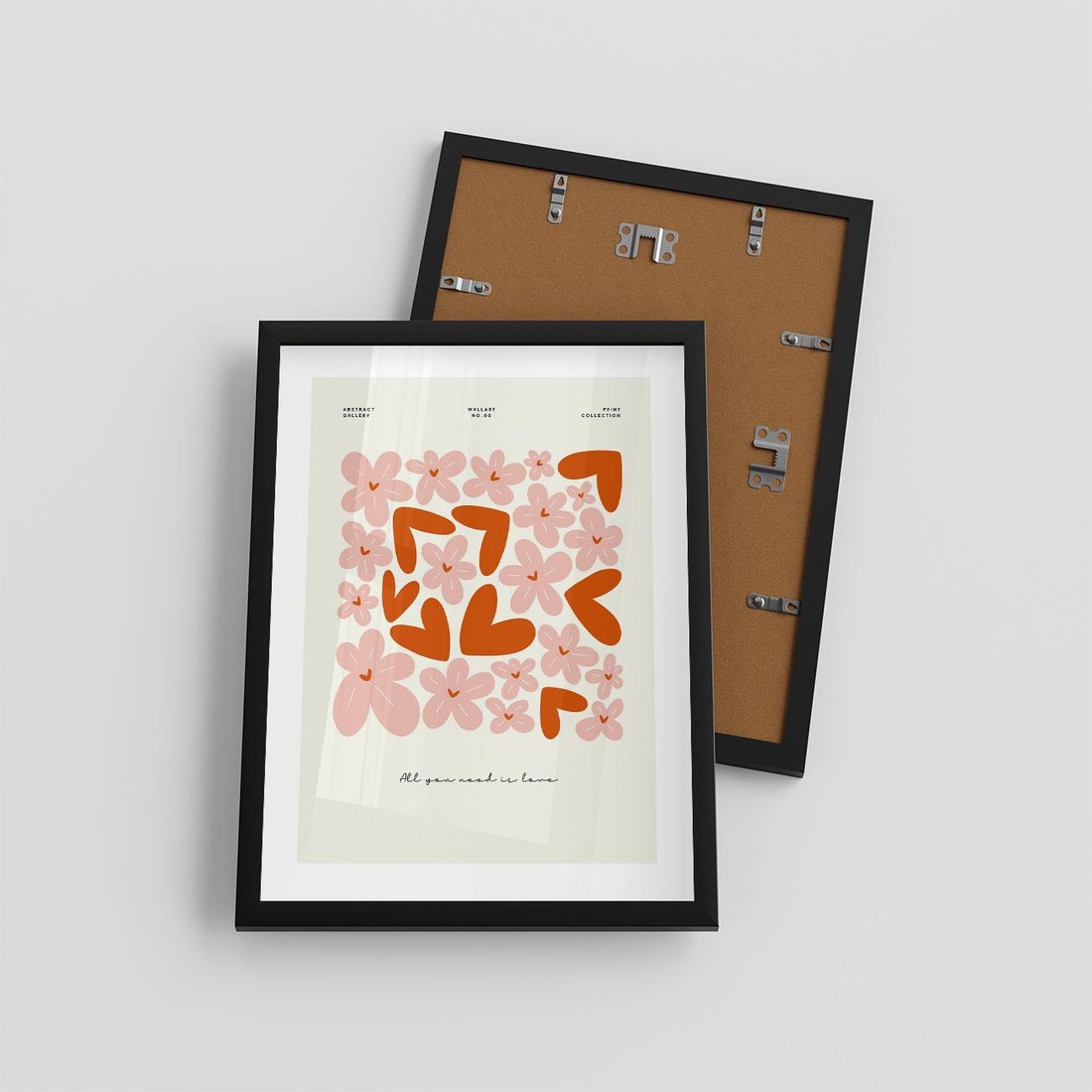 Plakat w ramie 30x40 - Miłość w Kompozycji - grafika, kompozycja kwiaty i serca - rama czarna