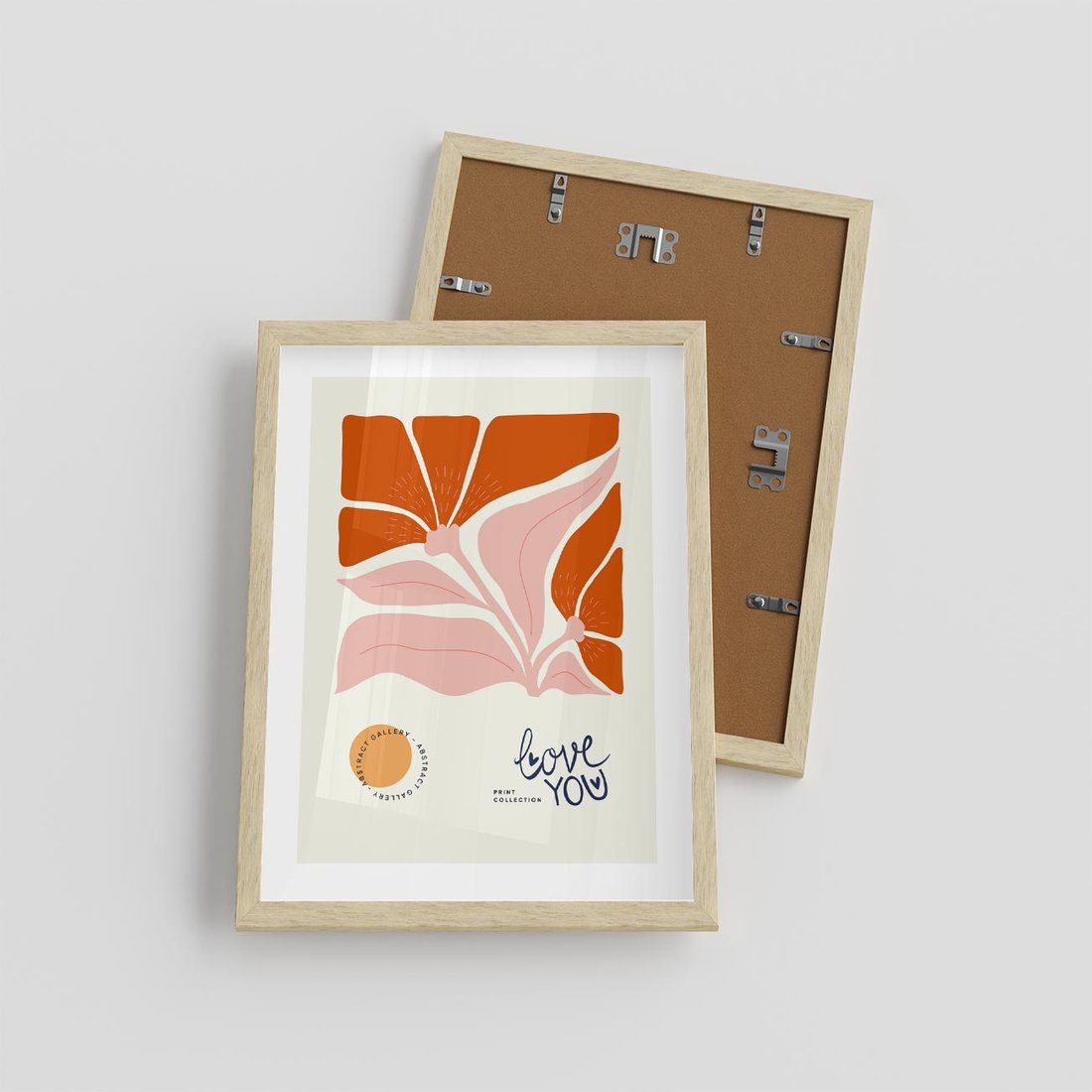 Ta nowoczesna grafika łączy kwiaty, miłość i typografię w delikatnych pastelowych odcieniach różu i pomarańczy. "Miłość w Kwiatowym Sercu" to artystyczne wyrażenie uczucia, które tworzy harmonijną kompozycję. Ten obraz doskonale wprowadzi romantyczną atmosferę do wnętrza, przynosząc równocześnie nowoczesną estetykę i ciepło uczucia.