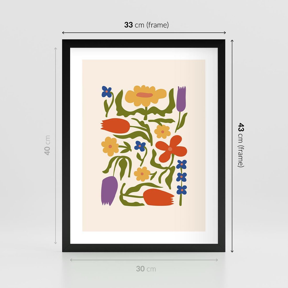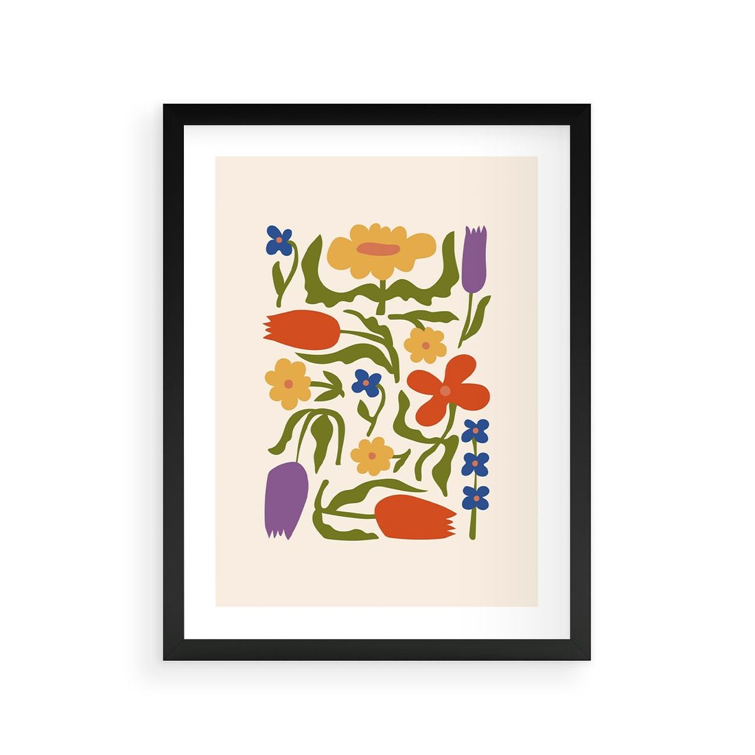 Plakat w ramie 30x40 - Minimalistyczna Harmonia - kwiaty, sztuka nowoczesna - rama czarna