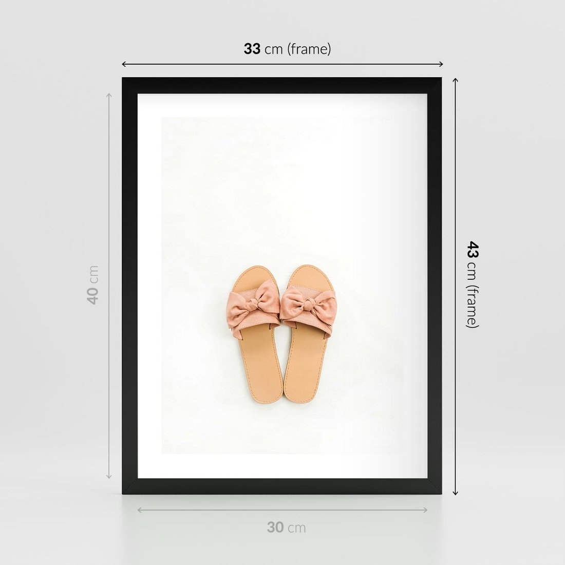 Plakat w ramie 30x40 - Minimalistyczna Moda: Klapki na Białym Tle - klapki, minimalizm - rama czarna