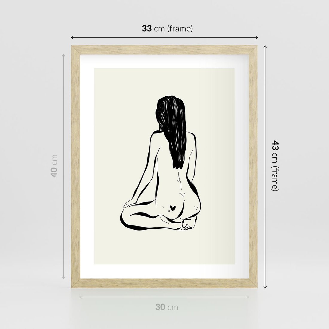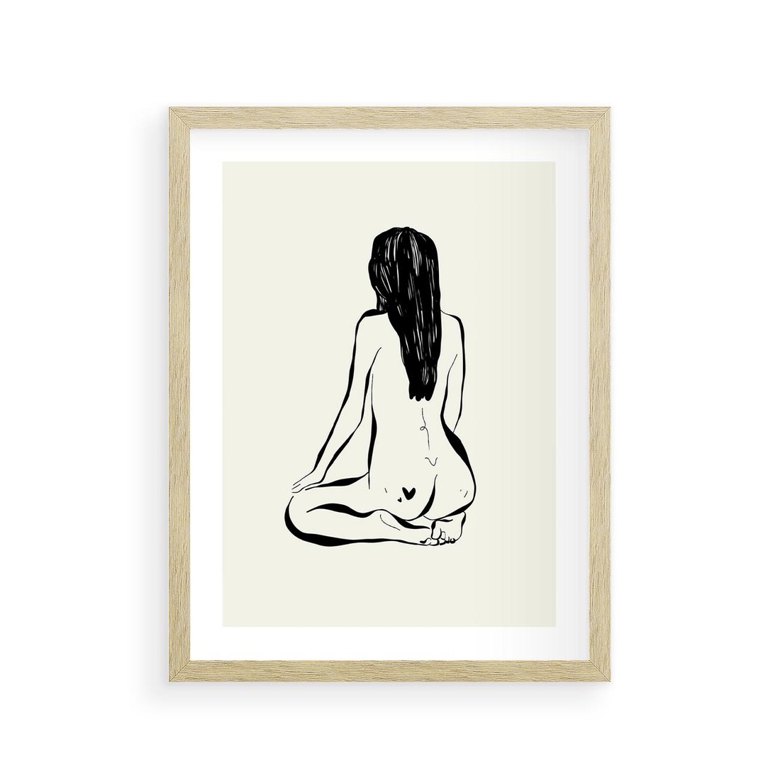 Plakat w ramie 30x40 - Minimalistyczna Piękność: Kobieta w Sztuce - grafika minimalizm, rysunek kobiety - rama drewno