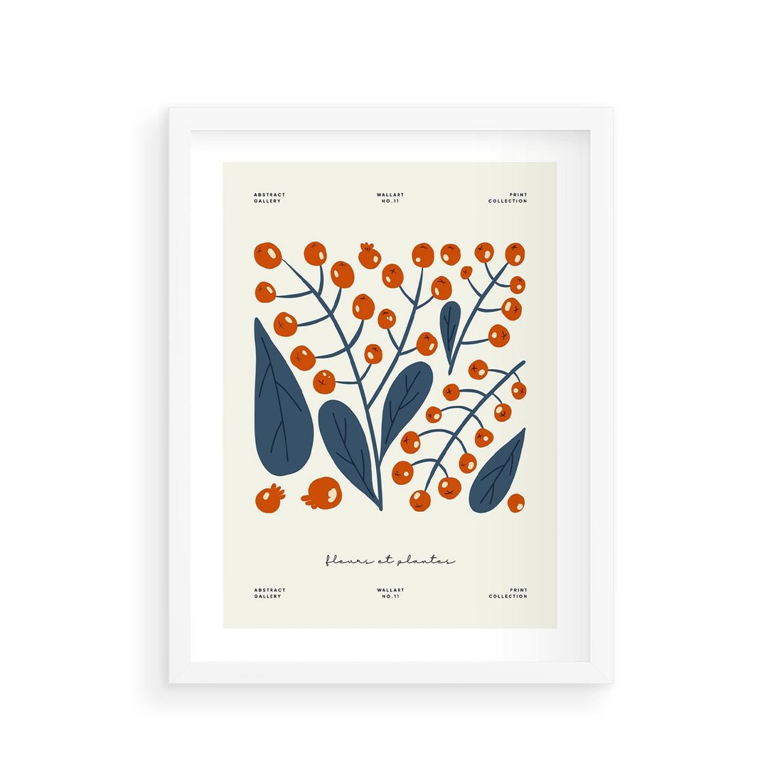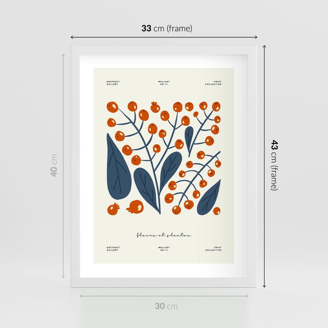Plakat w ramie 30x40 - Minimalistyczna Uroda Jarzębin - jarzębiny, niebieskie liście - rama biała