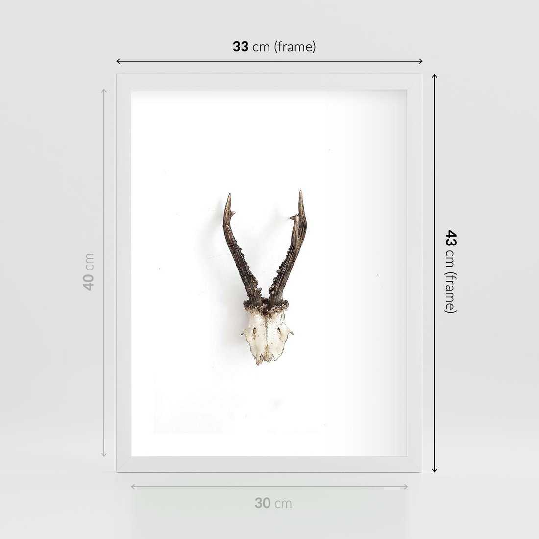 Plakat w ramie 30x40 - Minimalistyczne Poroże Jelenia - poroże jelenia na ścianie, minimalizm - rama biała