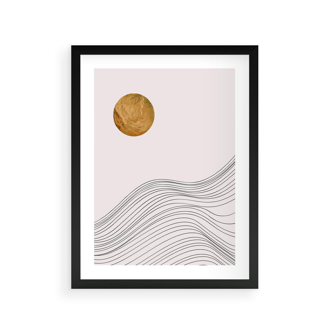 Plakat w ramie 30x40 - Minimalistyczne Słońce: Blask i Złoto - grafika, minimalizm - rama czarna