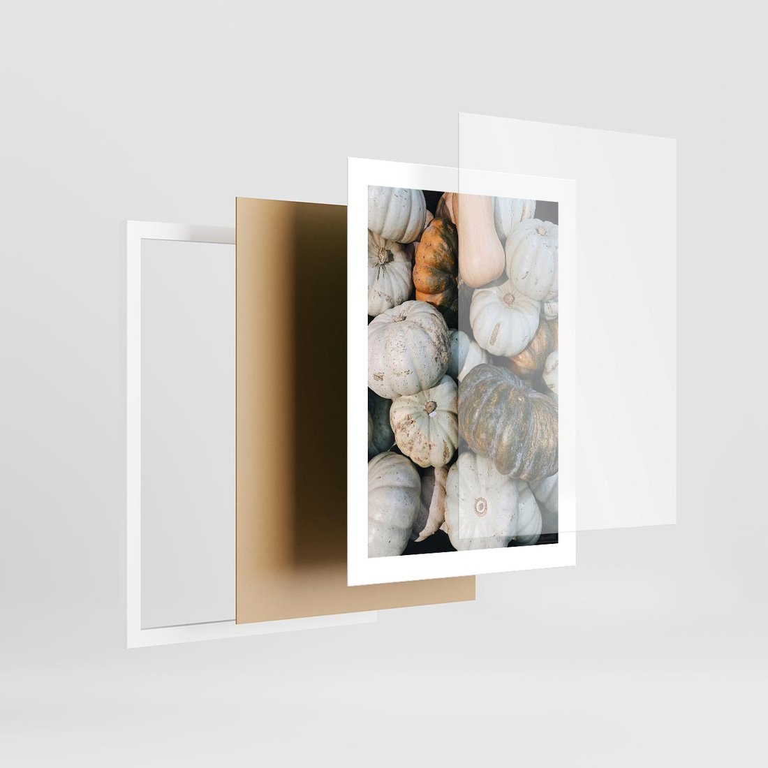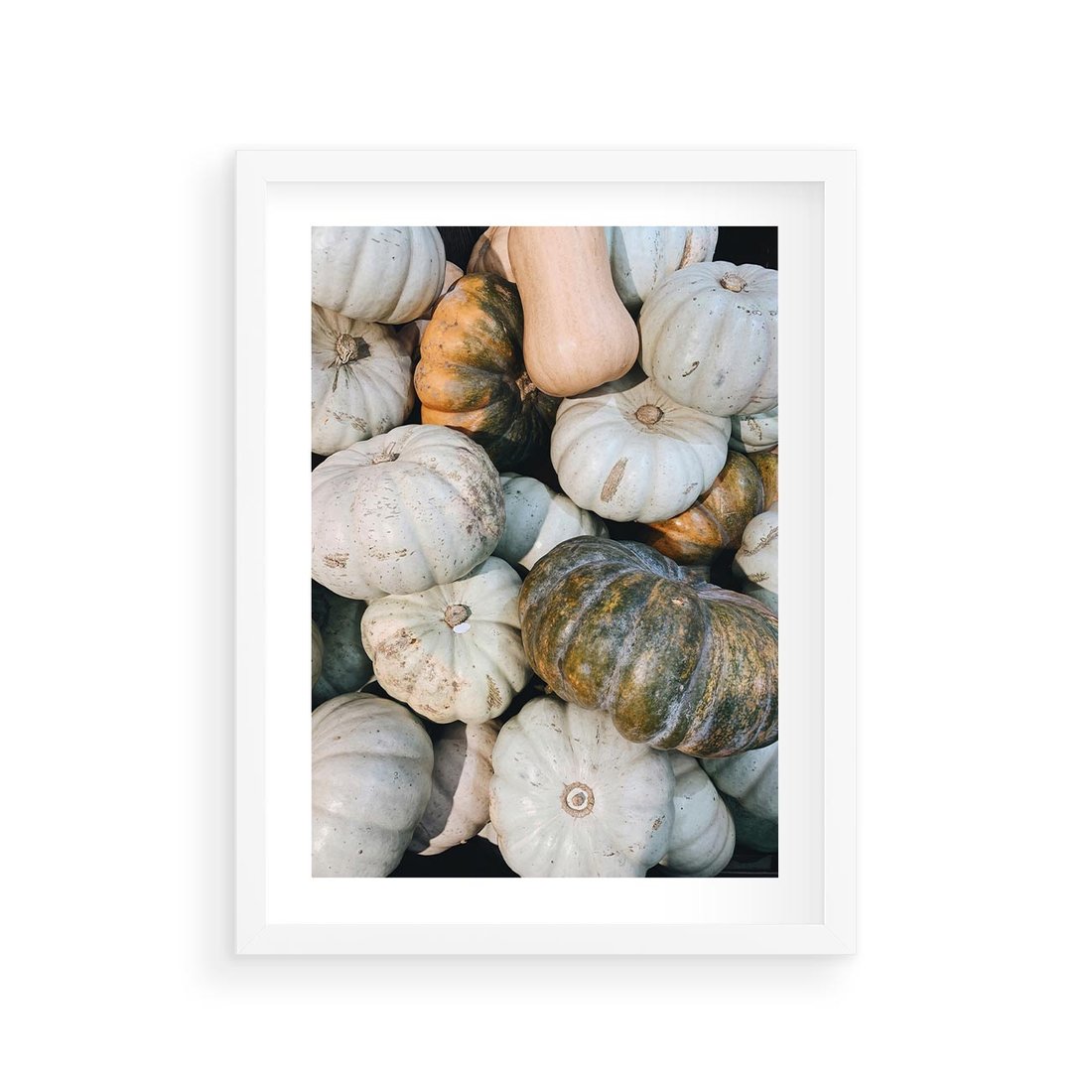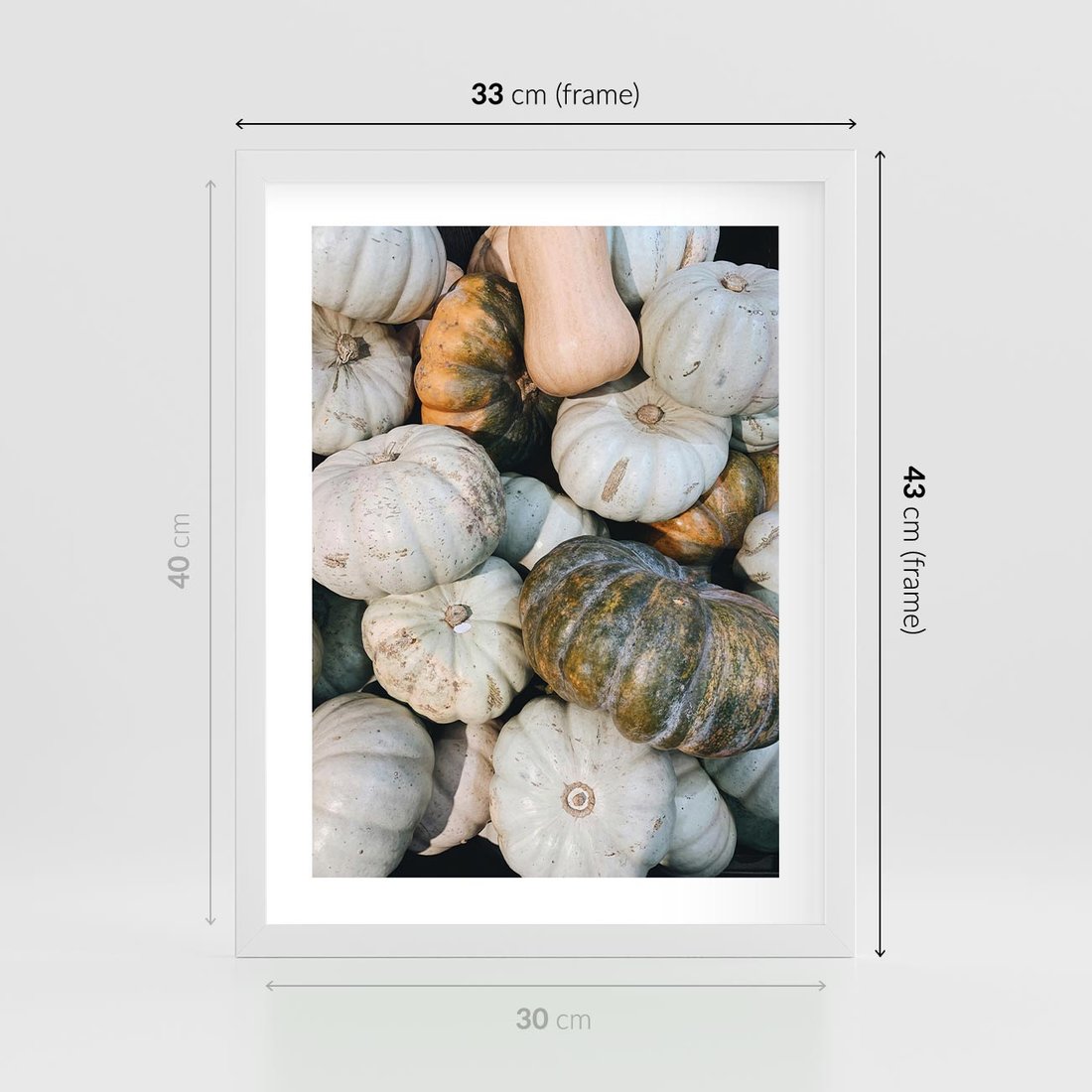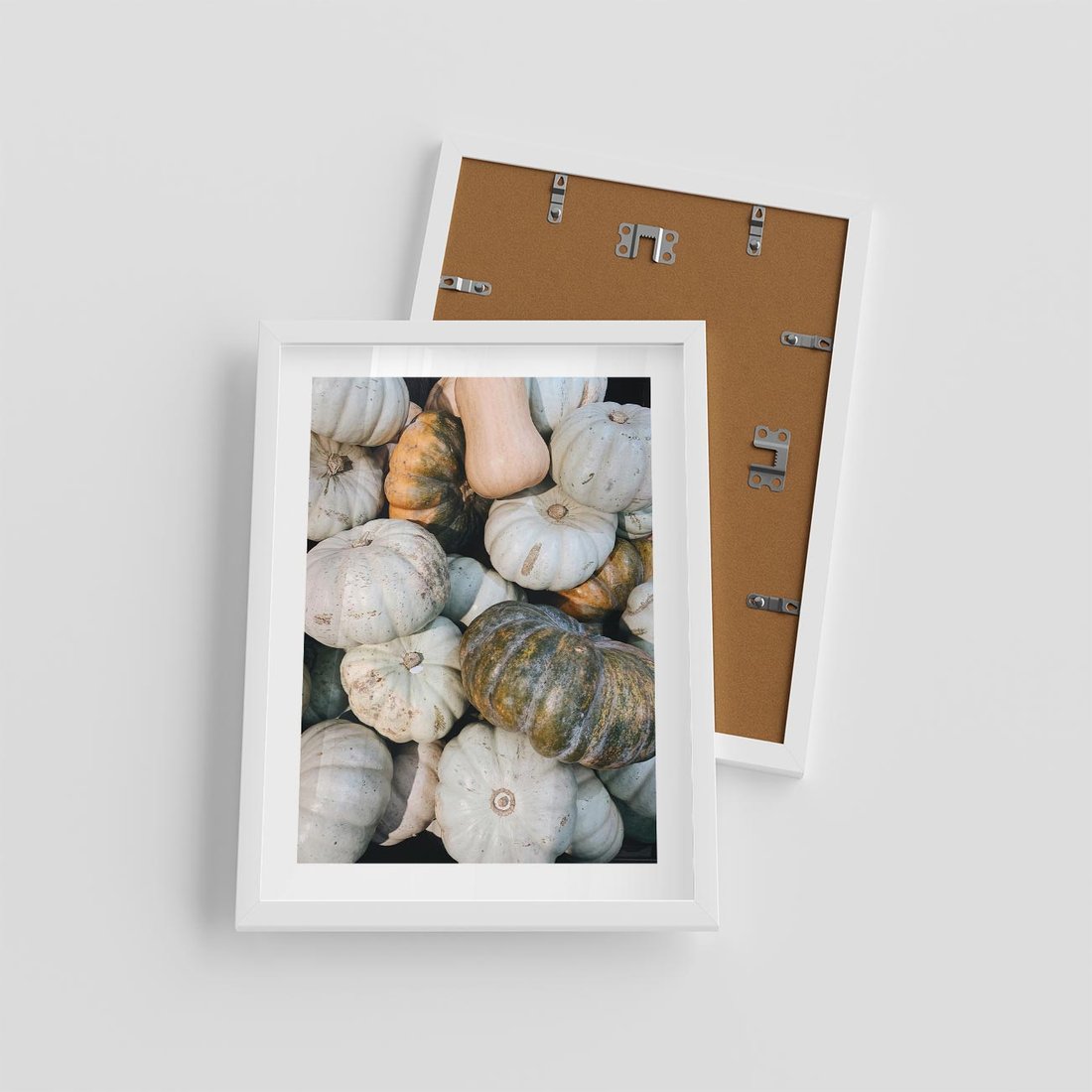 Plakat w ramie 30x40 - Minimalizm Jesieni - dynie, białe - rama biała
