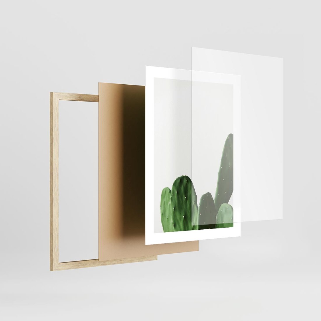 Plakat w ramie 30x40 - Minimalizm Natury - kaktus, zbliżenie - rama drewno