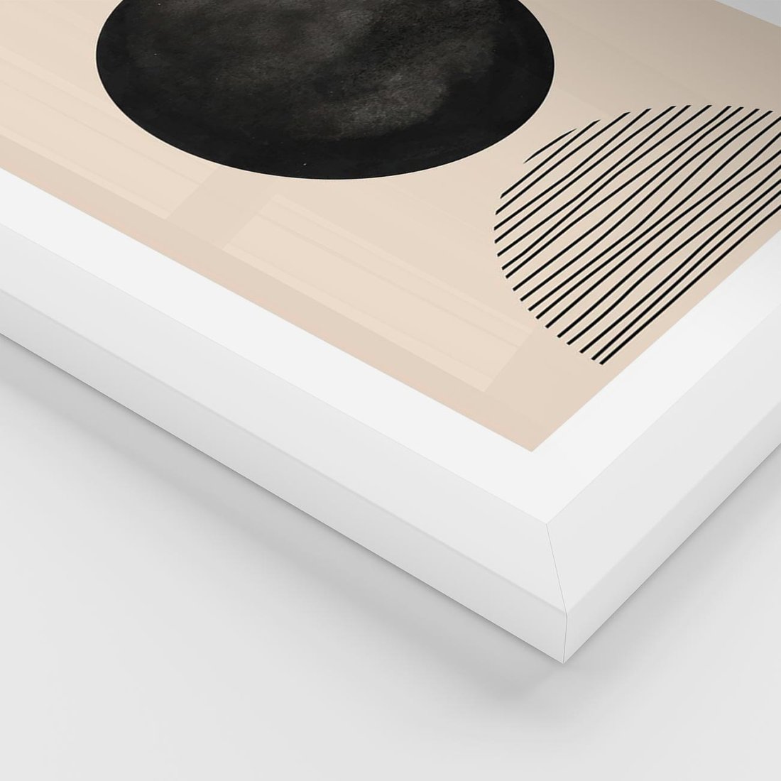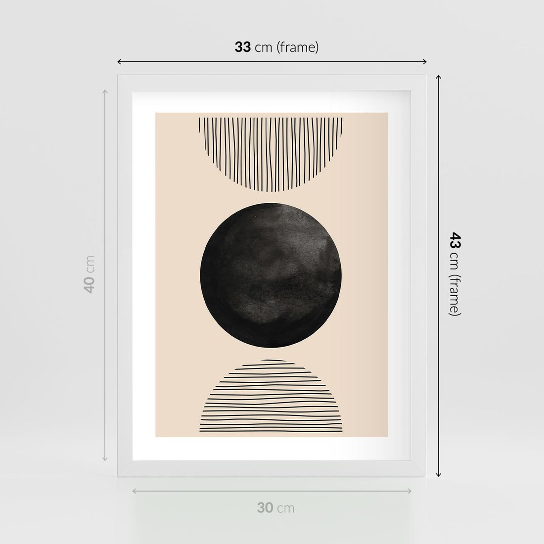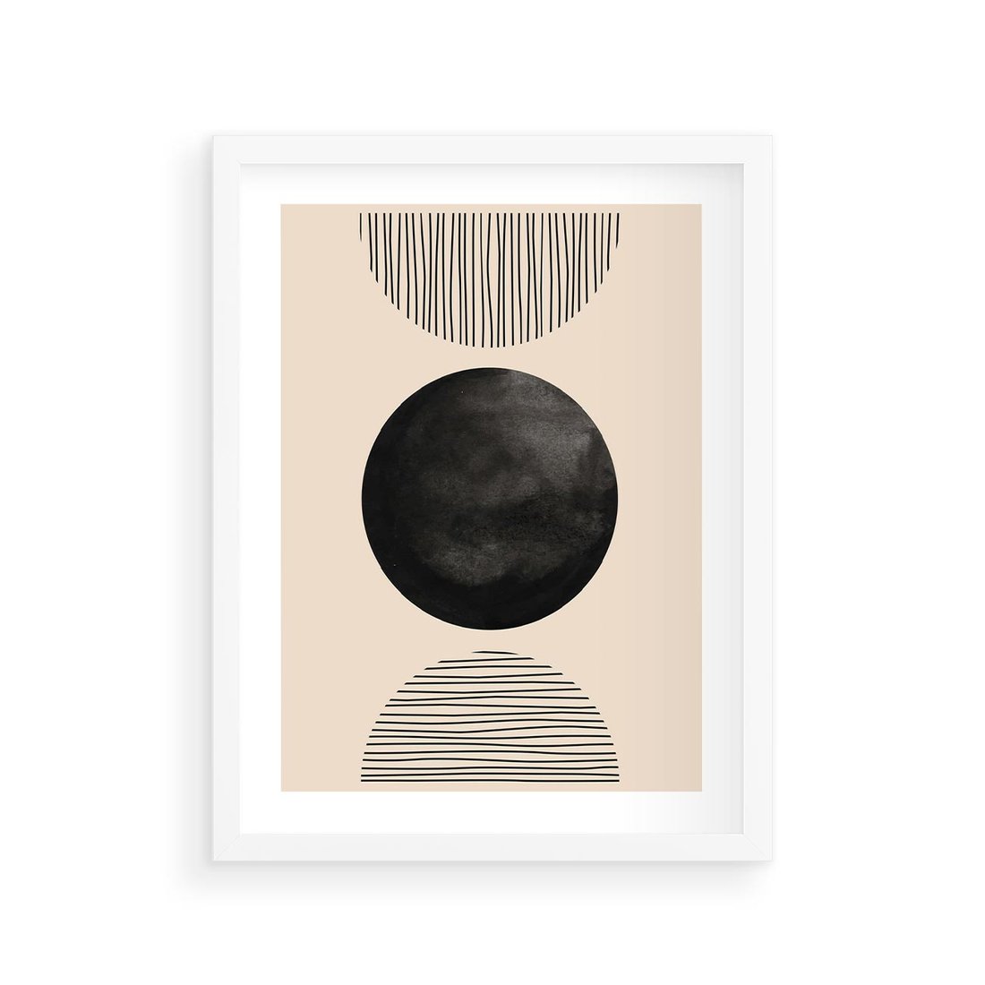 Plakat w ramie 30x40 - Minimalizm w Kształtach - geometryczny graficzny obraz, czarne koło - rama biała
